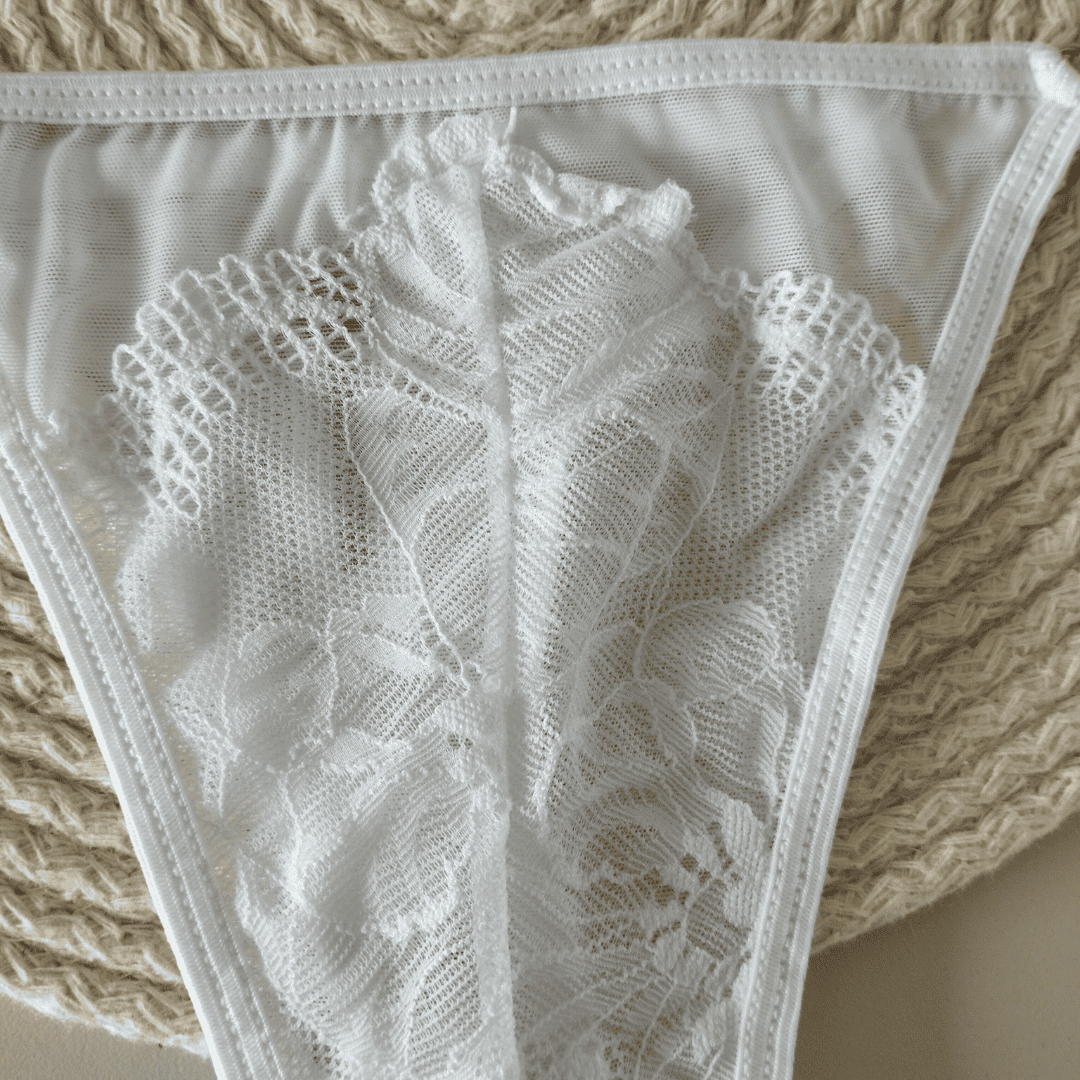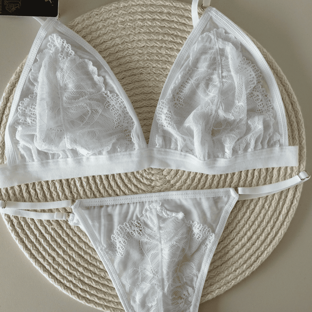 ❣ Triángulo estilo bralette sin armado de tul de lycra y puntilla con elástico de microfibra suave en cintura. No transparenta.