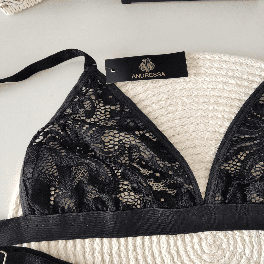 ❣ Conjunto triángulo estilo bralette sin armado de encaje con lycra.
