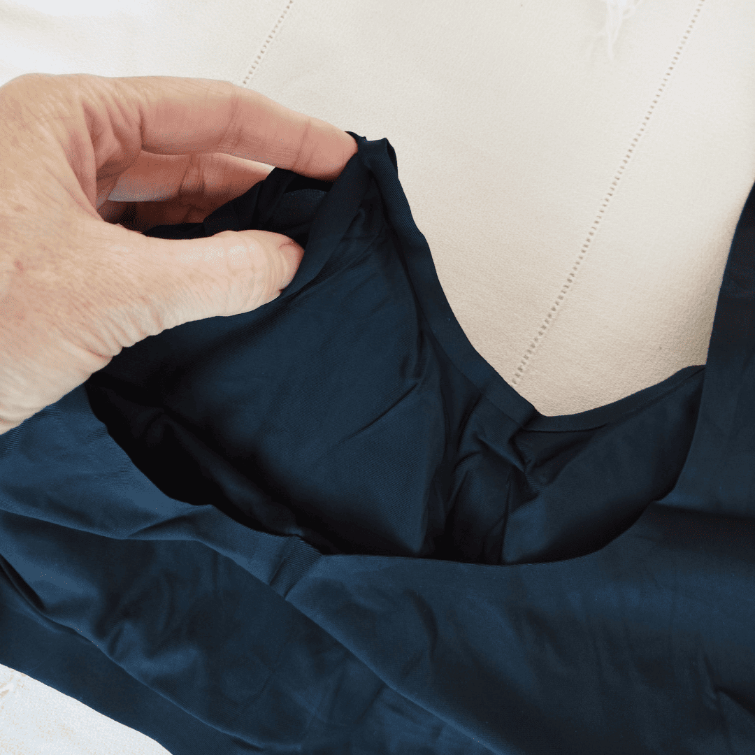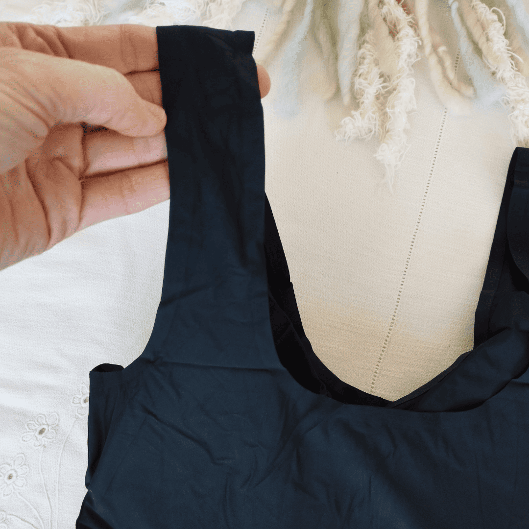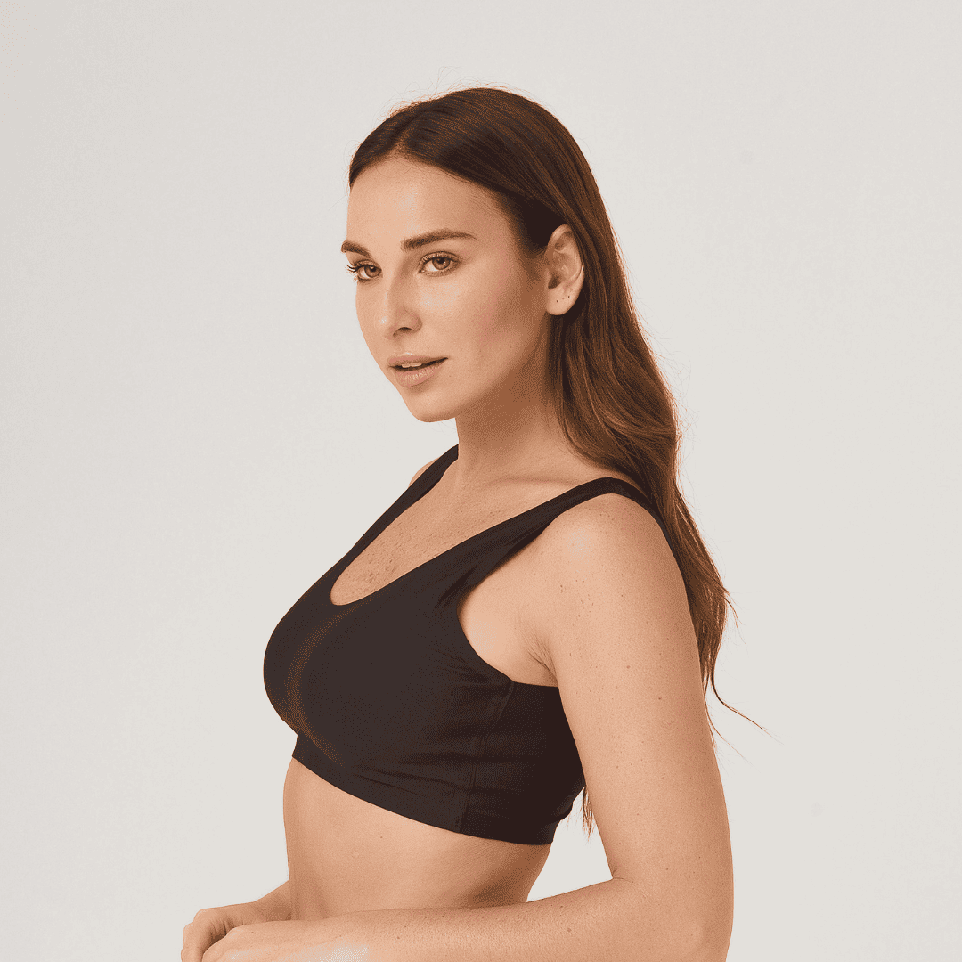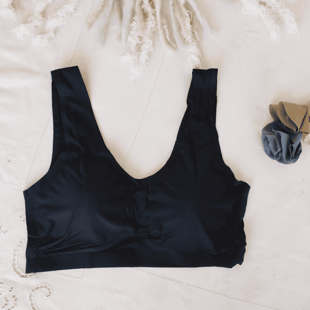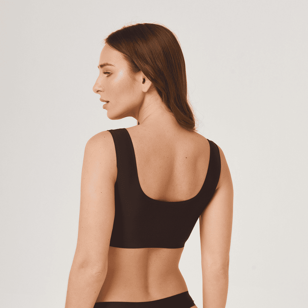 Corpiño tipo top de microfibra supersoft con tazas internas desmontables. Los elásticos están termofusionados.
