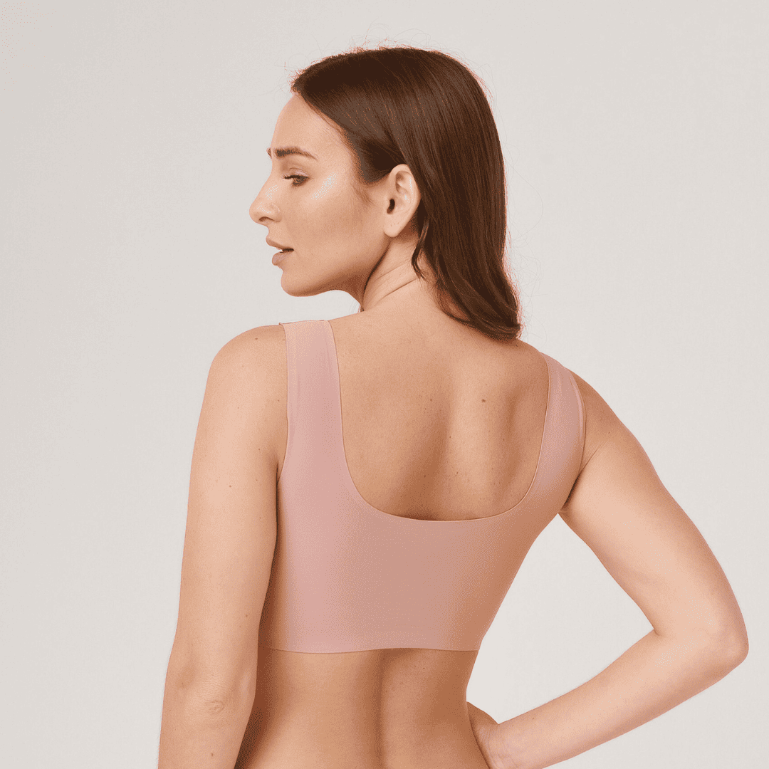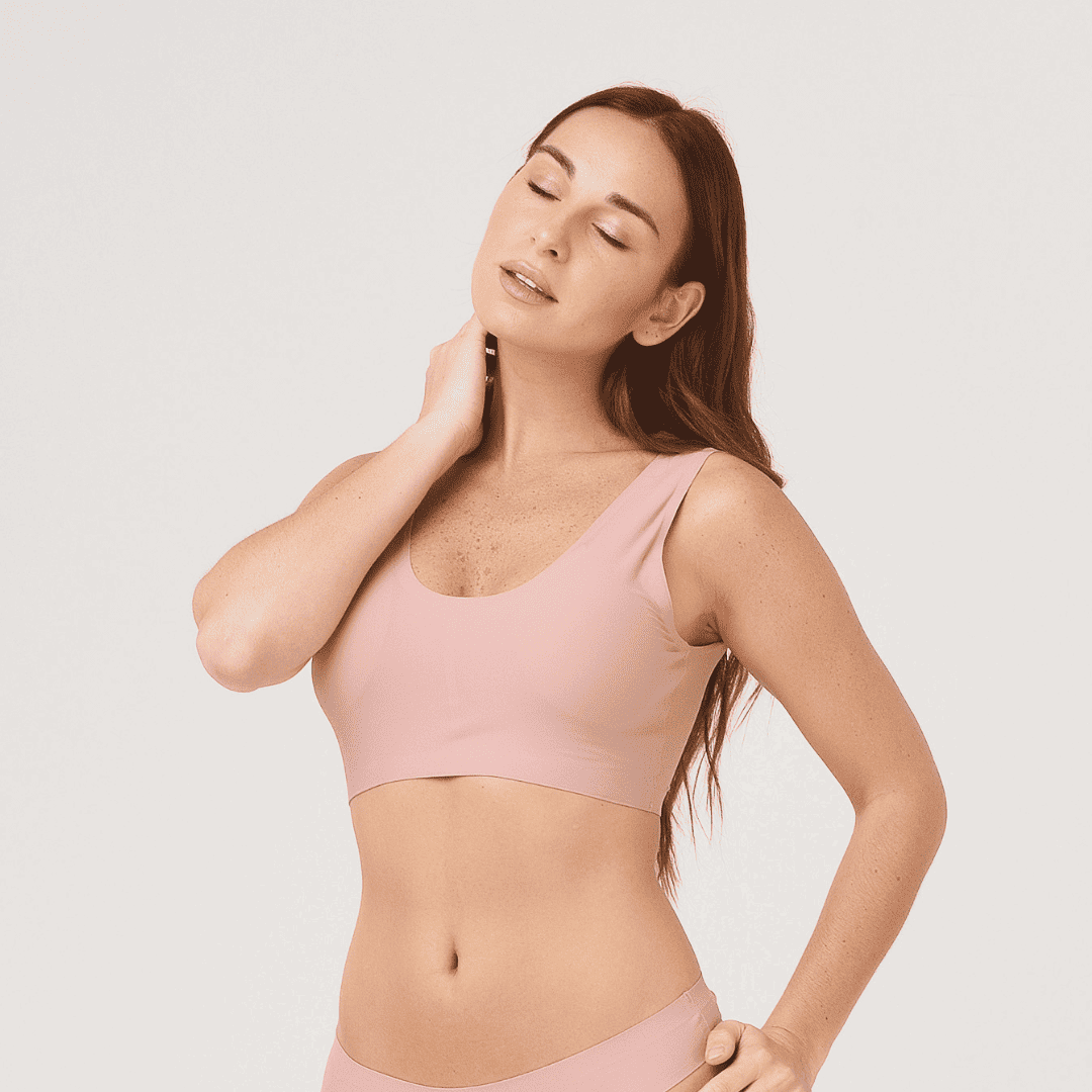 Corpiño tipo top de microfibra supersoft con tazas internas desmontables. Los elásticos están termofusionados.