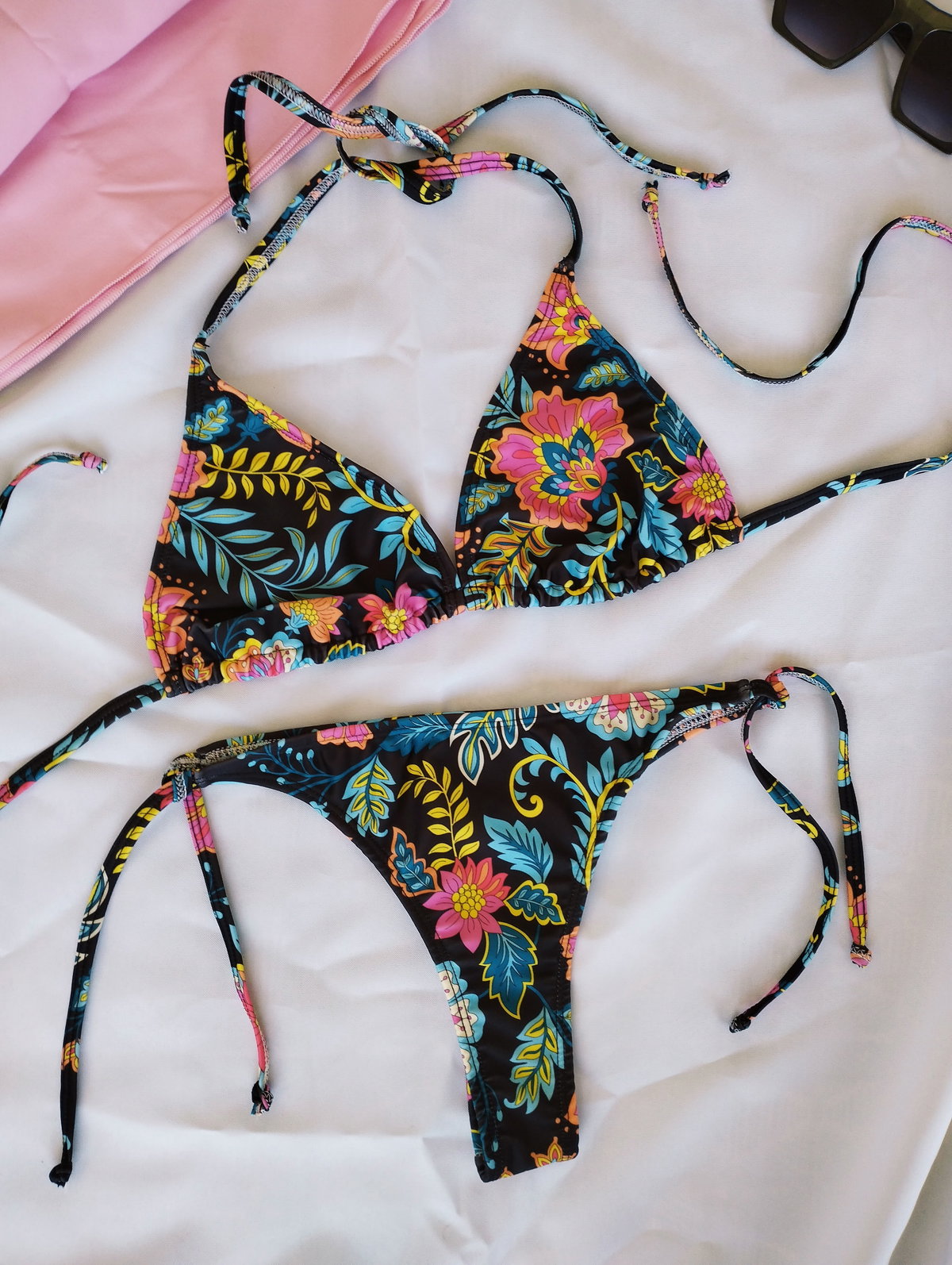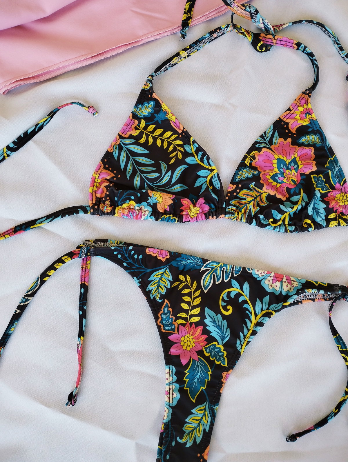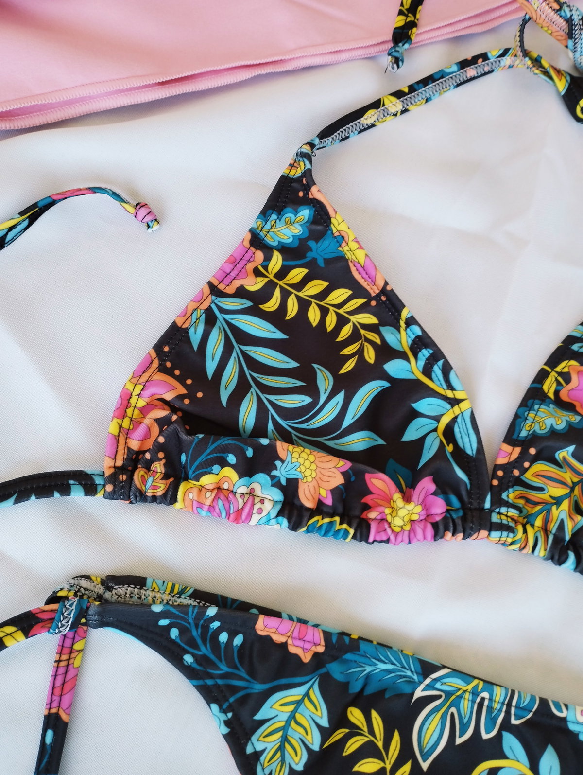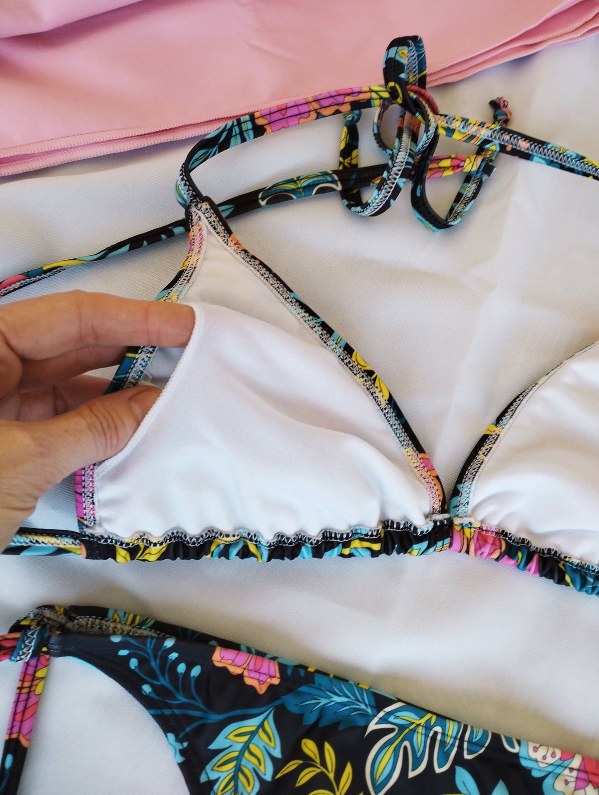 ❣️Corpiño triángulo movible forrado y bajo busto con doble tira para atar. Trae bolsillo para agregar una taza (las tazas NO están incluídas)