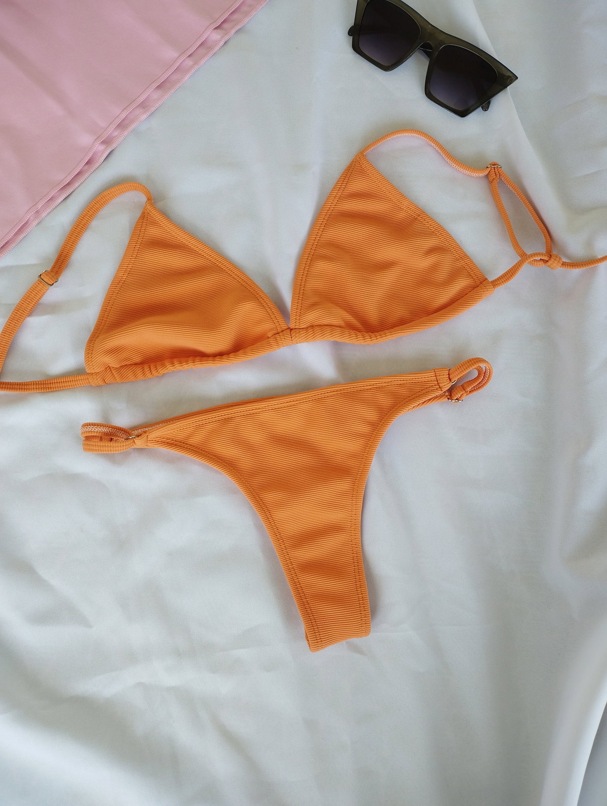 ❣️Corpiño triángulo forrado movible con breteles regulables y bajo busto para atar con bolsillo para agregar una taza (las tazas NO están incluídas)