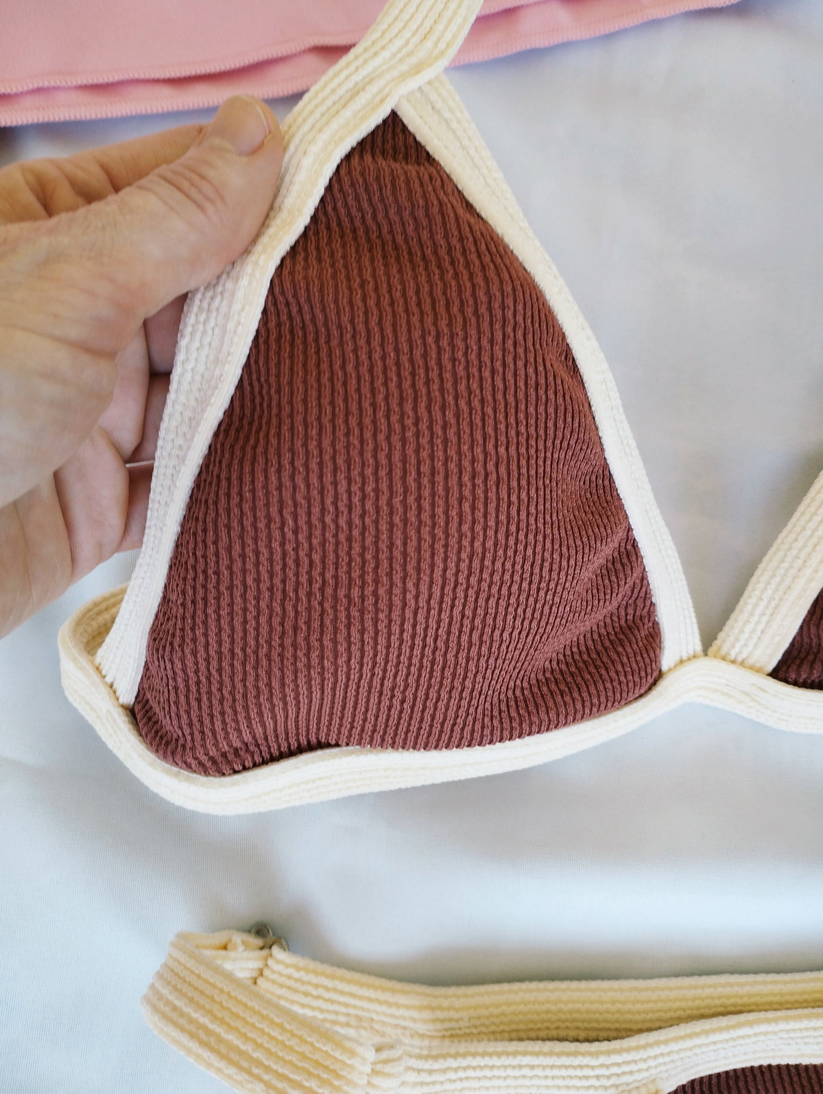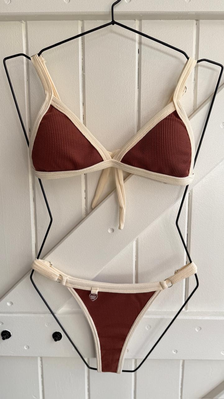 ❣️Triángulo fijo con breteles en contratono regulables, espalda para atar y tazas desmontables.