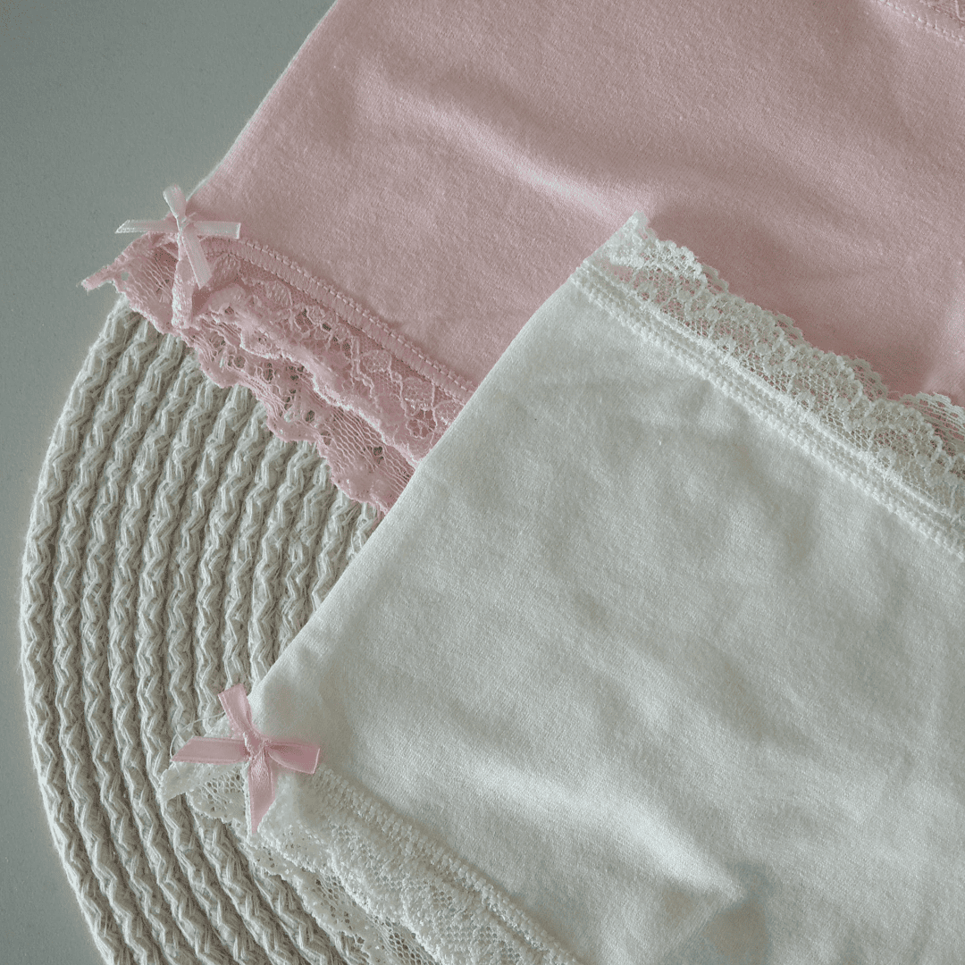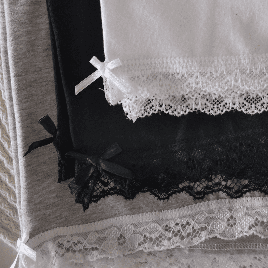 ❣ Minishort de algodón y lycra con terminaciones de fina puntilla.