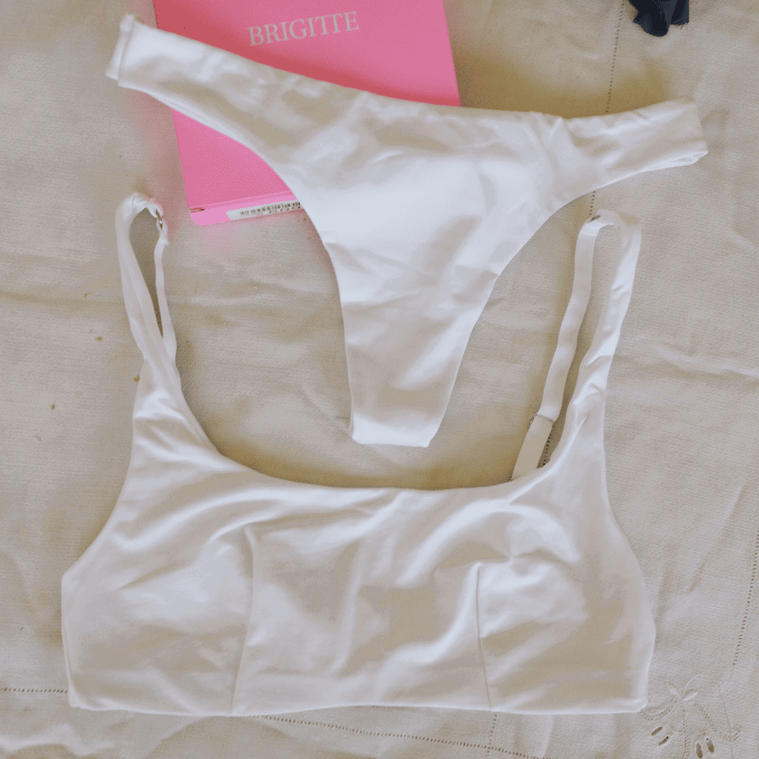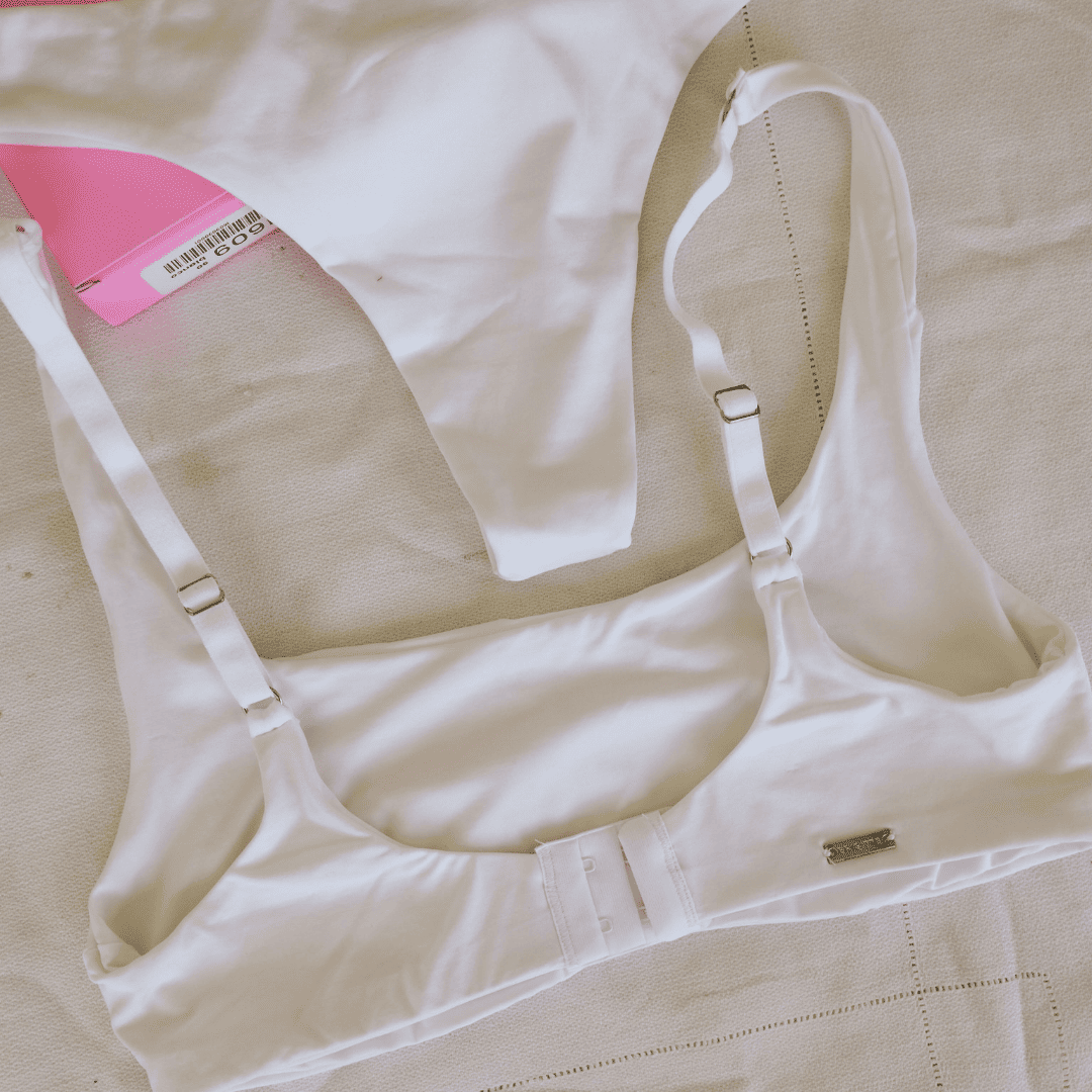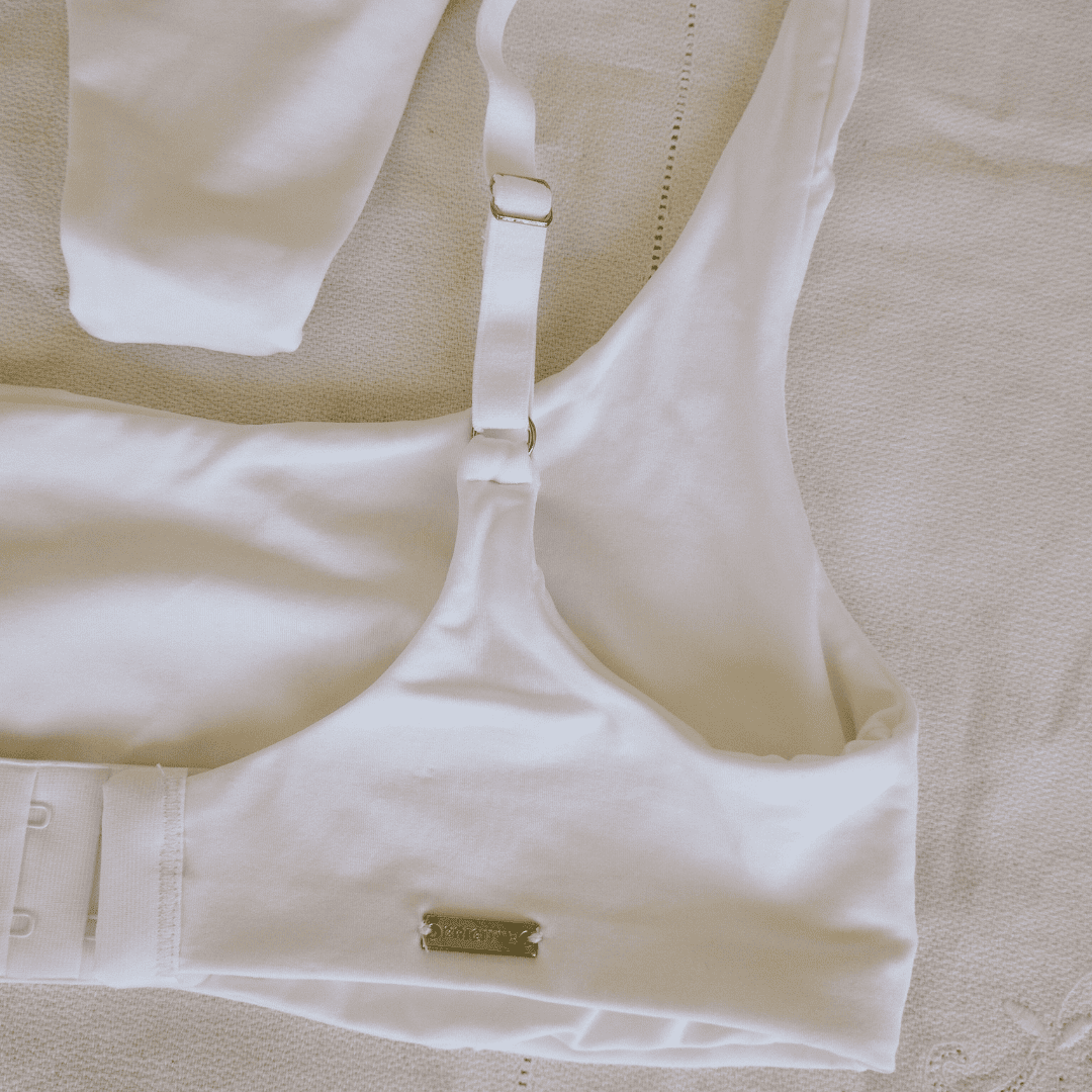 Corpiño sin relleno, con broche en la espalda y breteles regulables. Doble tela.