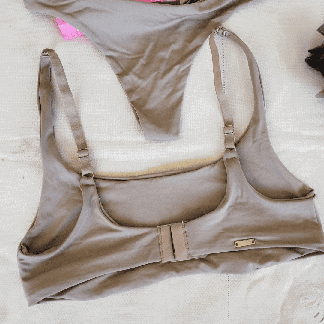Corpiño sin relleno, con broche en la espalda y breteles regulables. Doble tela.
