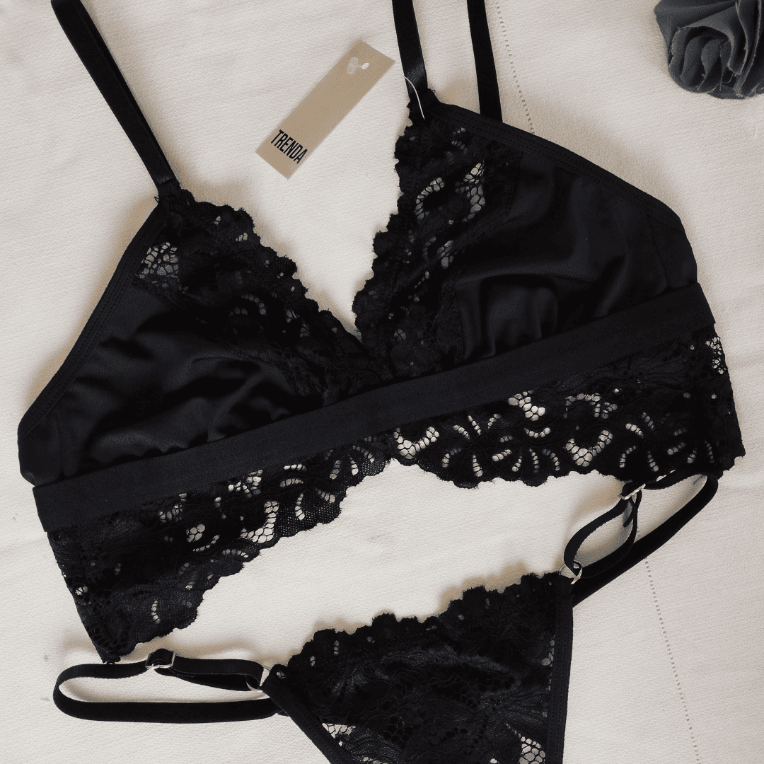 ❣ Corpiño tipo bralette de microfibra con cintura irregular de puntilla.