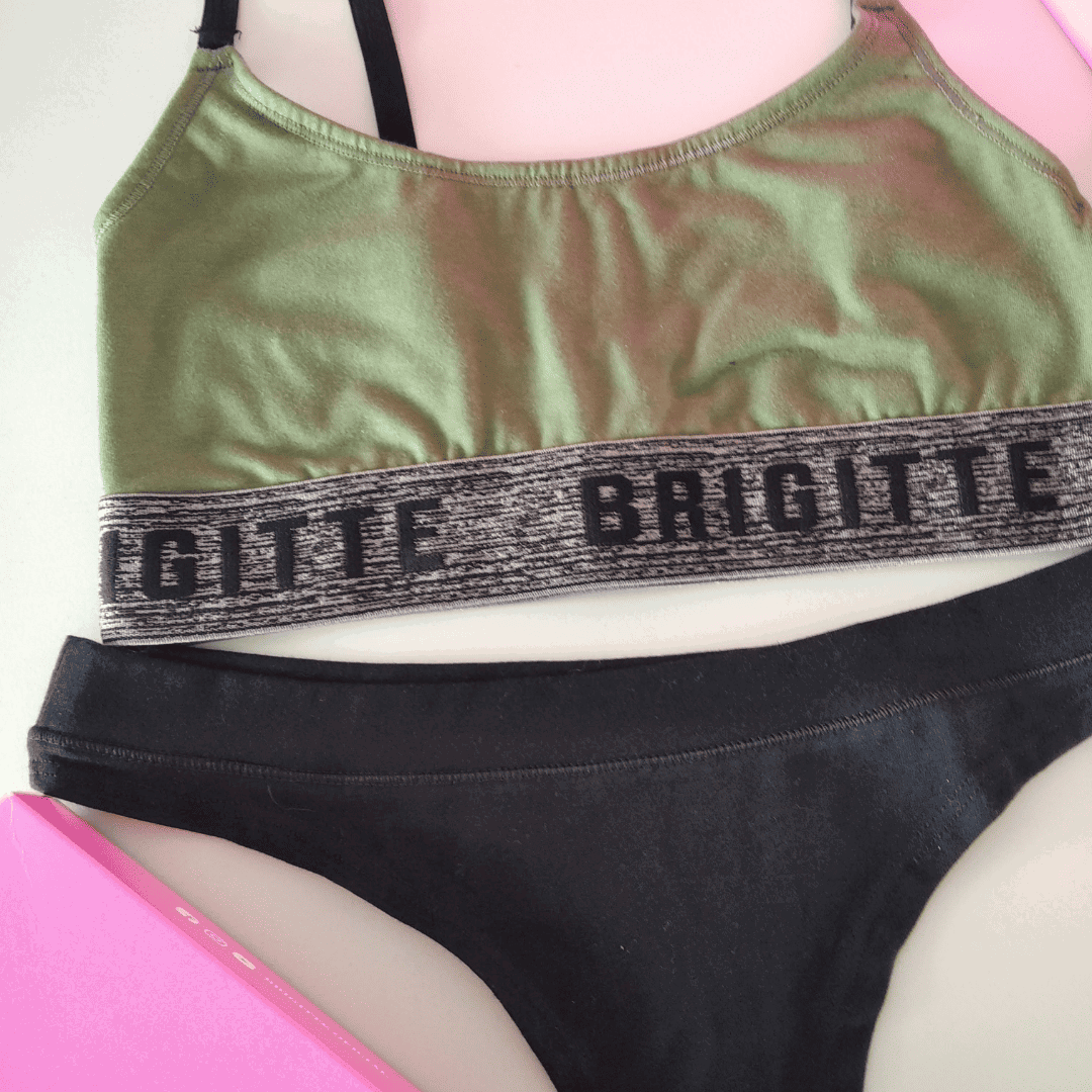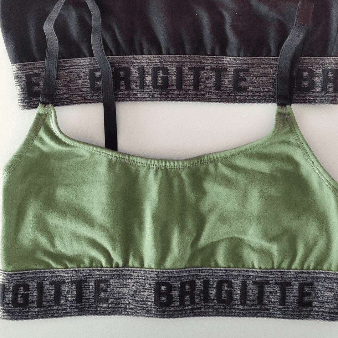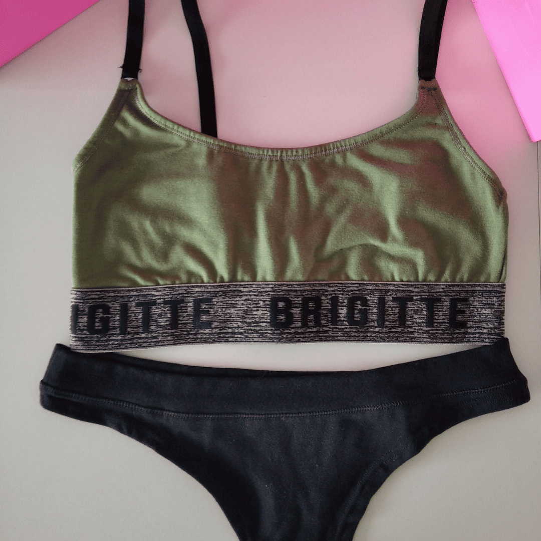 Corpiño tipo top de doble tela con elástico ancho color oliva