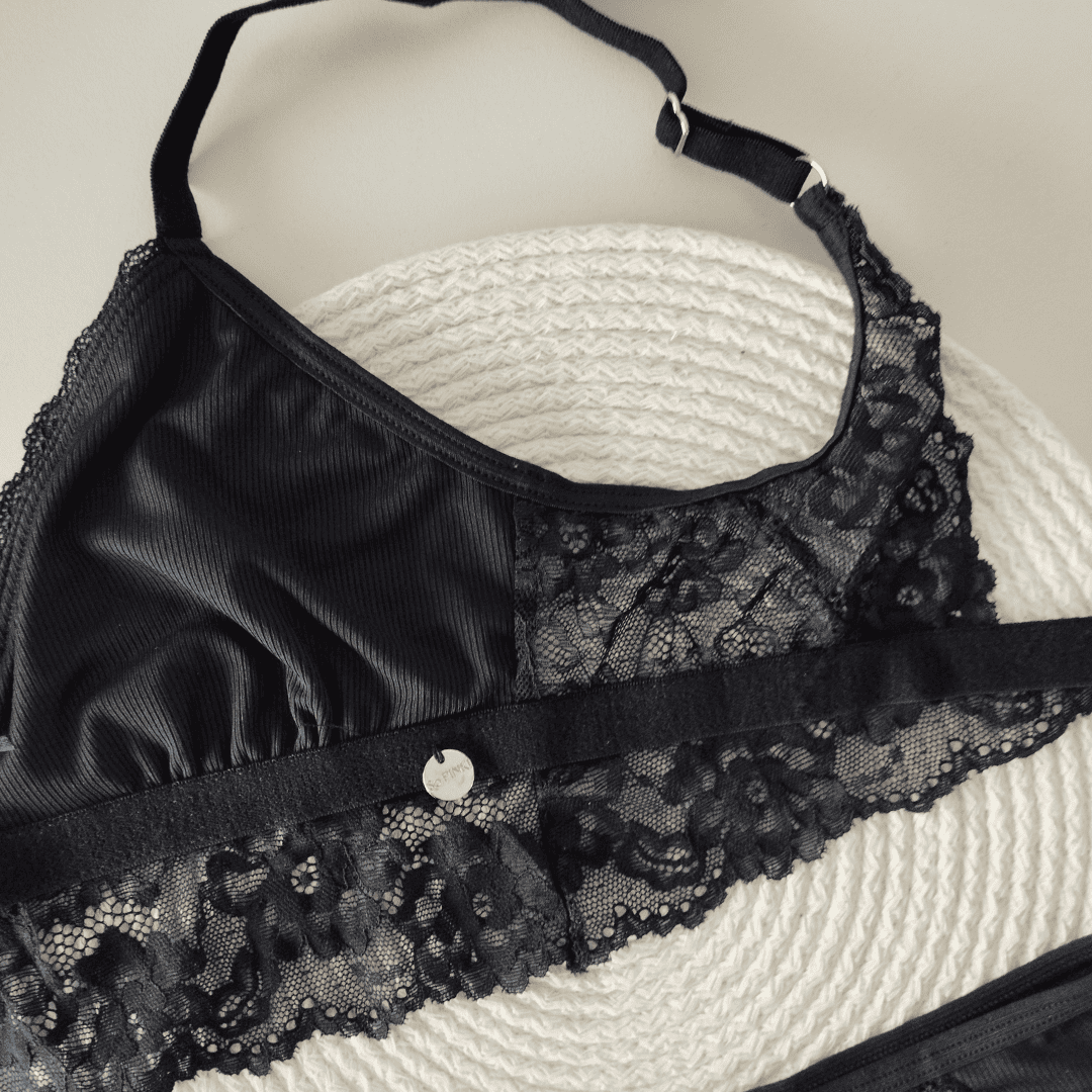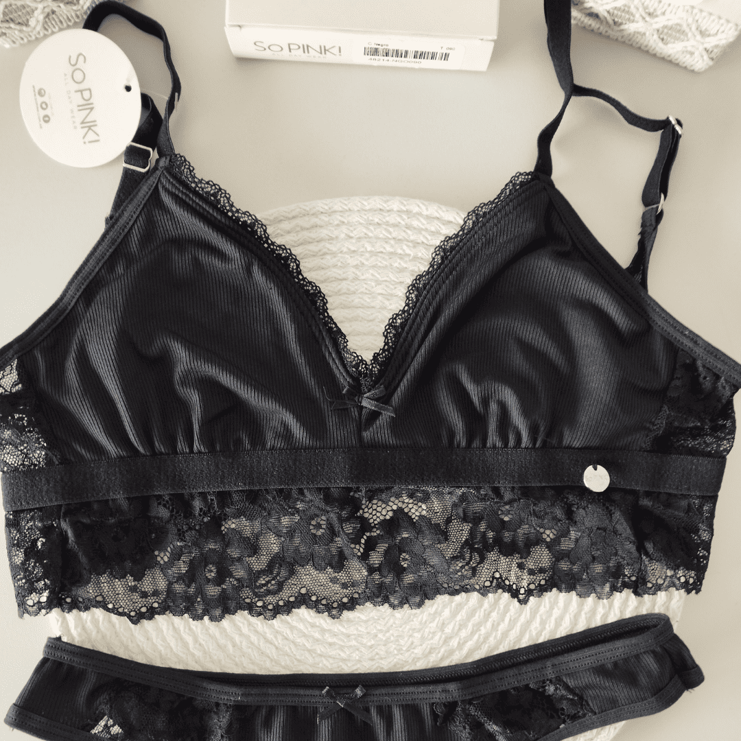 ❣ Corpiño triángulo sin relleno forrado en el interior. Cintura y espalda con detalle de puntilla