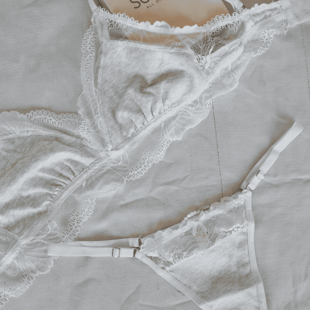❣ Conjunto de la línea SoPink de algodón y lycra con puntilla.