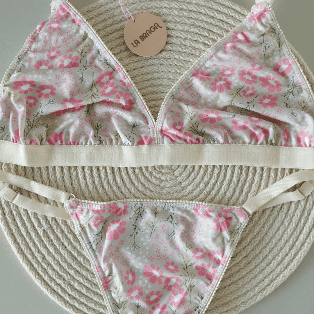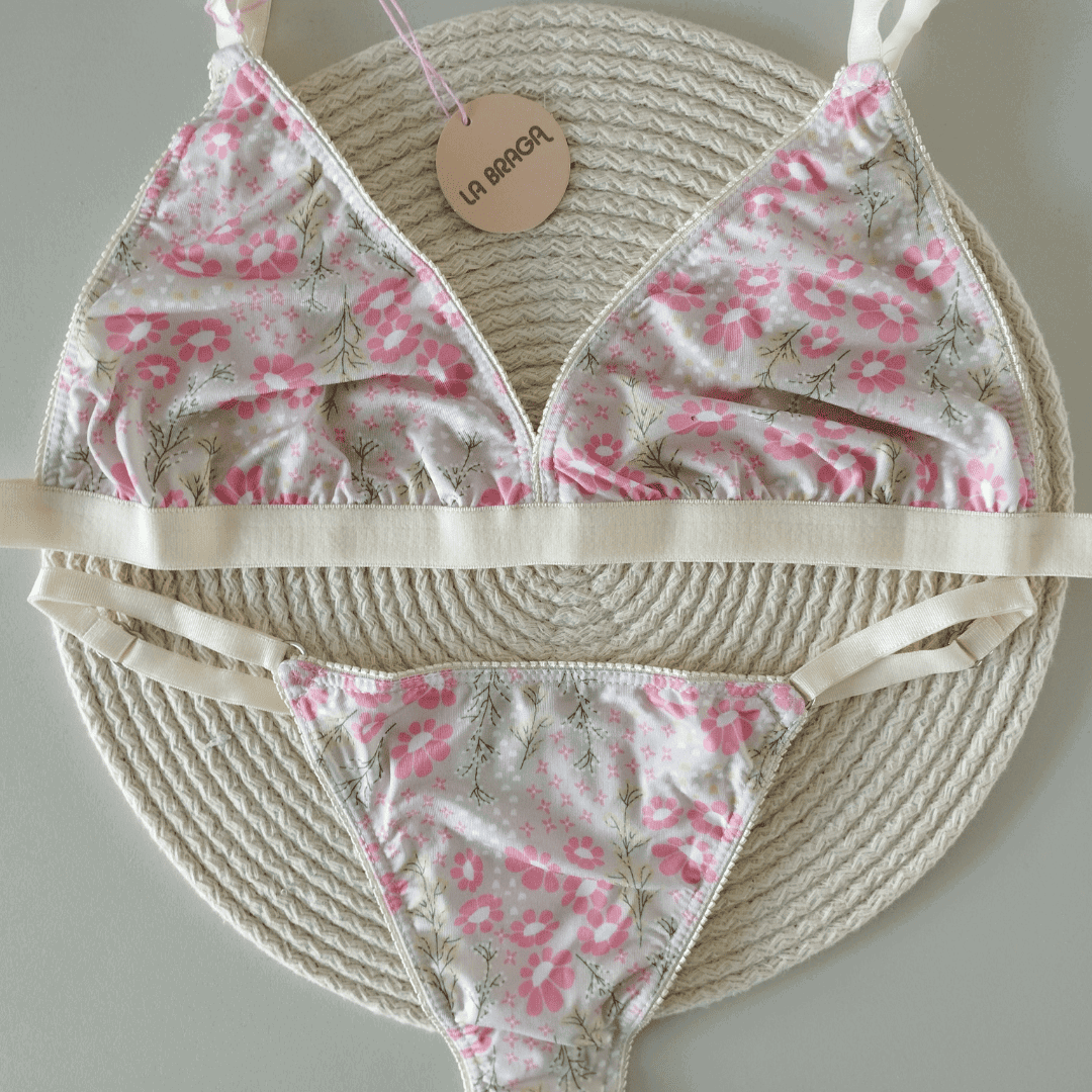 ❣ Conjunto de microfibra estampada con elásticos en tono natural