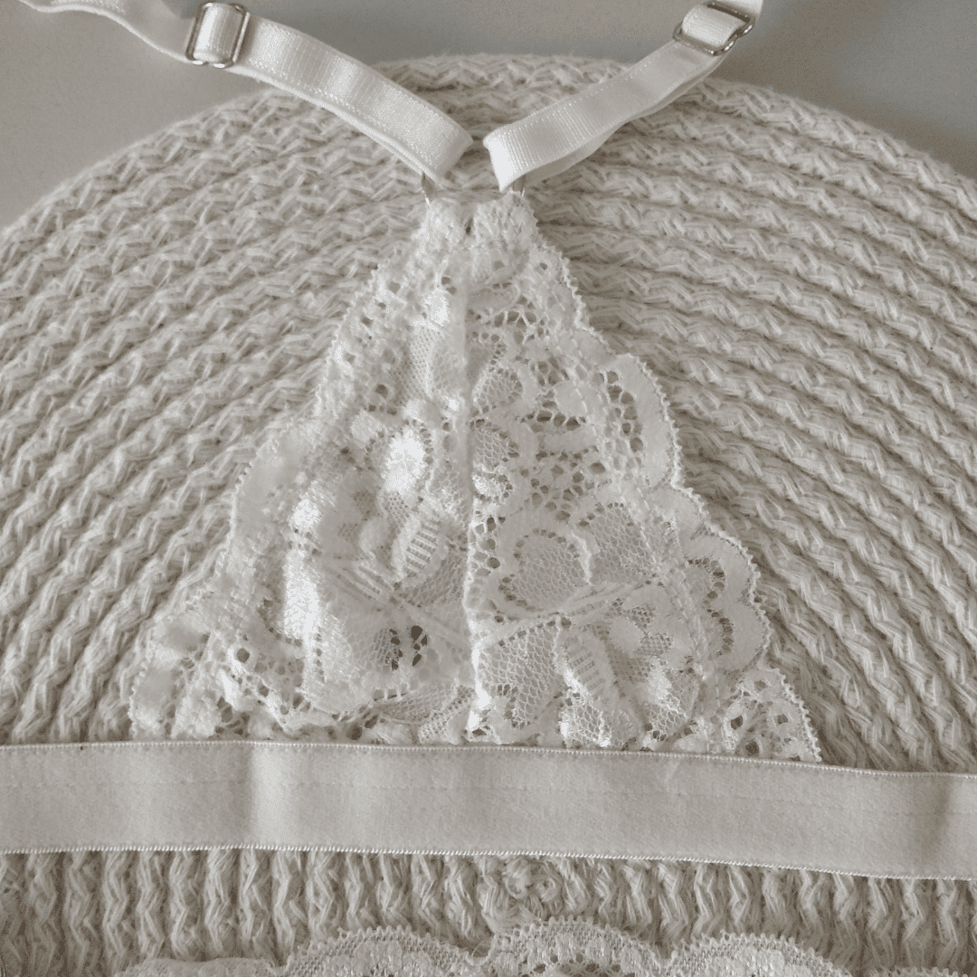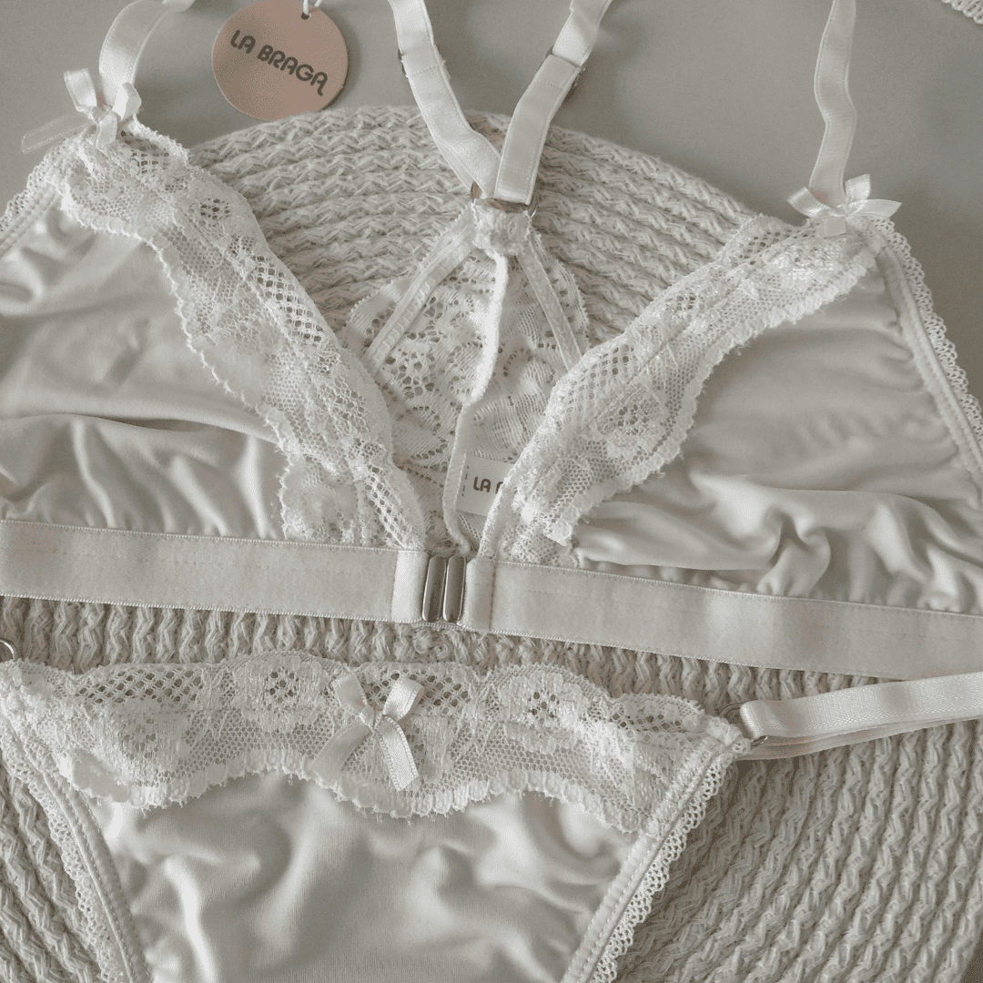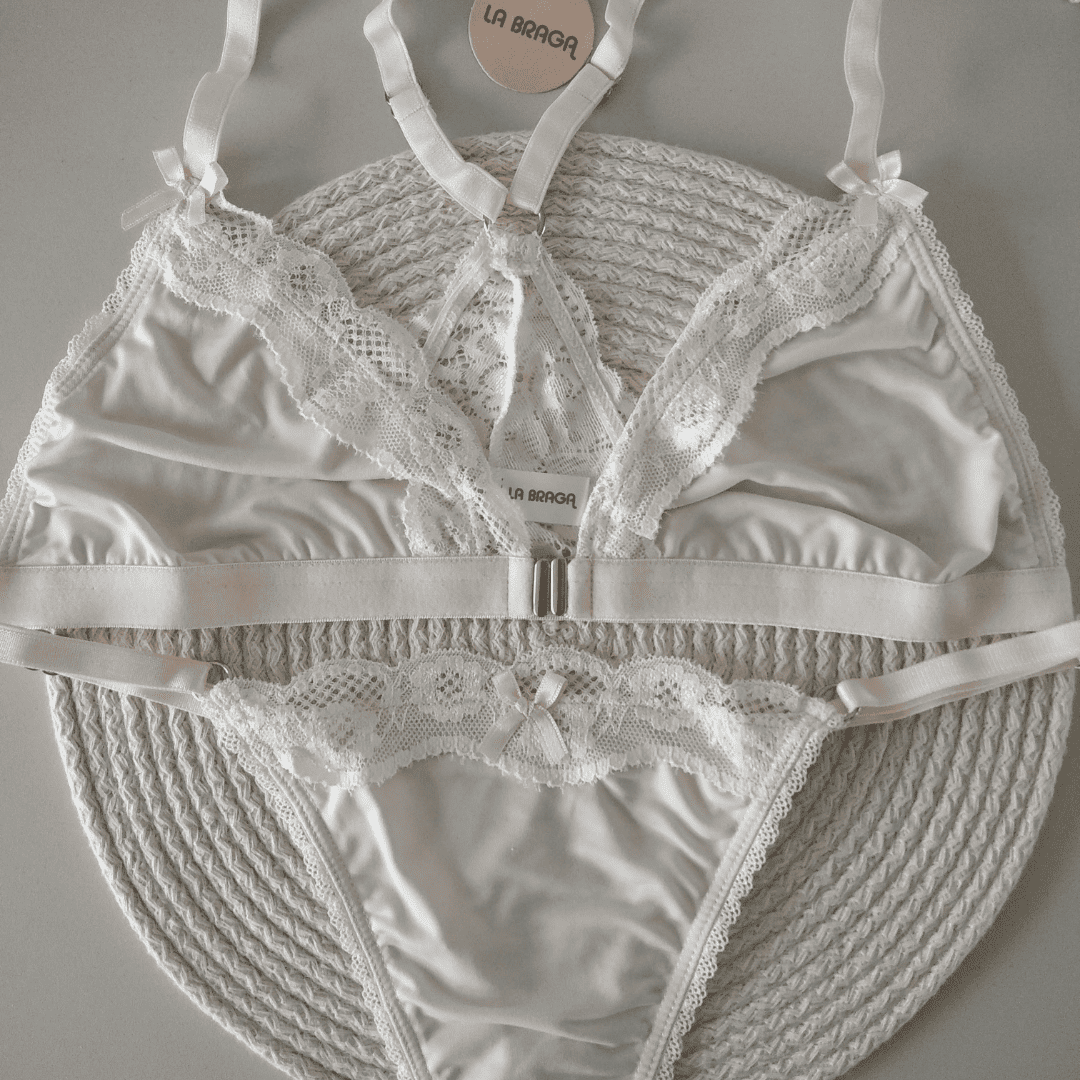 ❣ Conjunto triángulo sin relleno de microfibra, broche delantero.