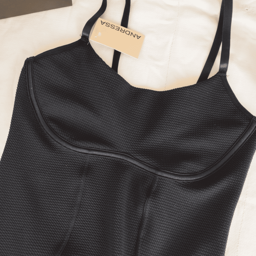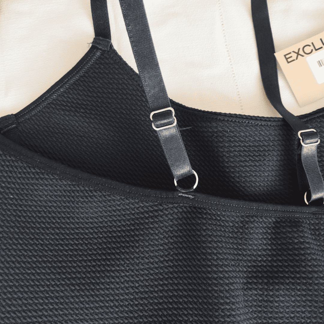 ❣Tela texturada con detalle bajo busto de tricot simulando aro (no tiene aro ni relleno)