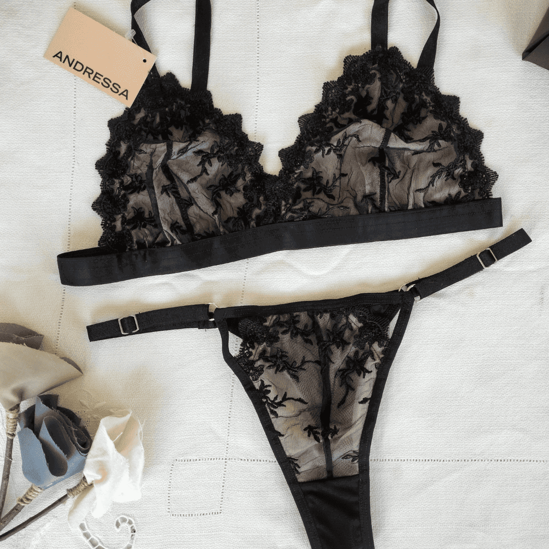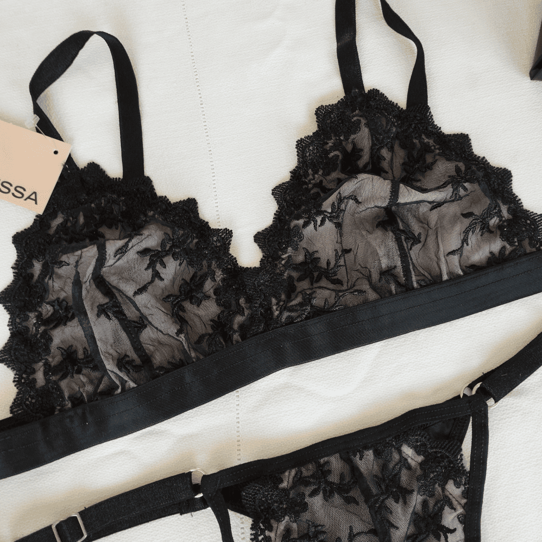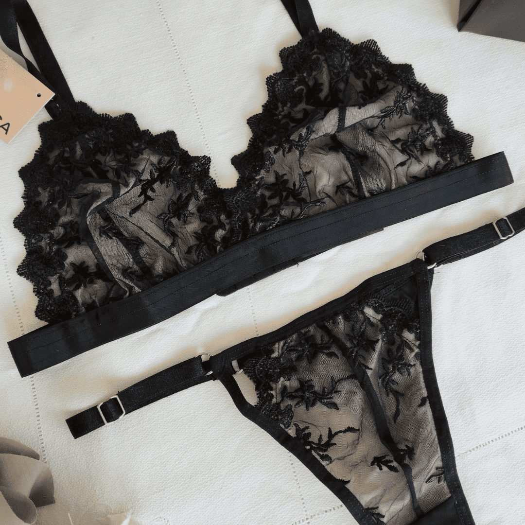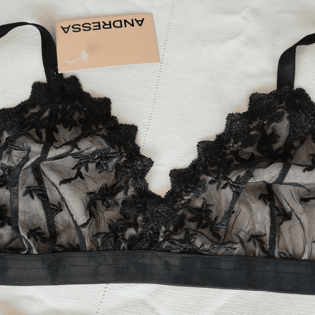 ❣ Corpiño triángulo sin relleno tipo bralette de tul bordado, forrado en su interior (no transparenta)