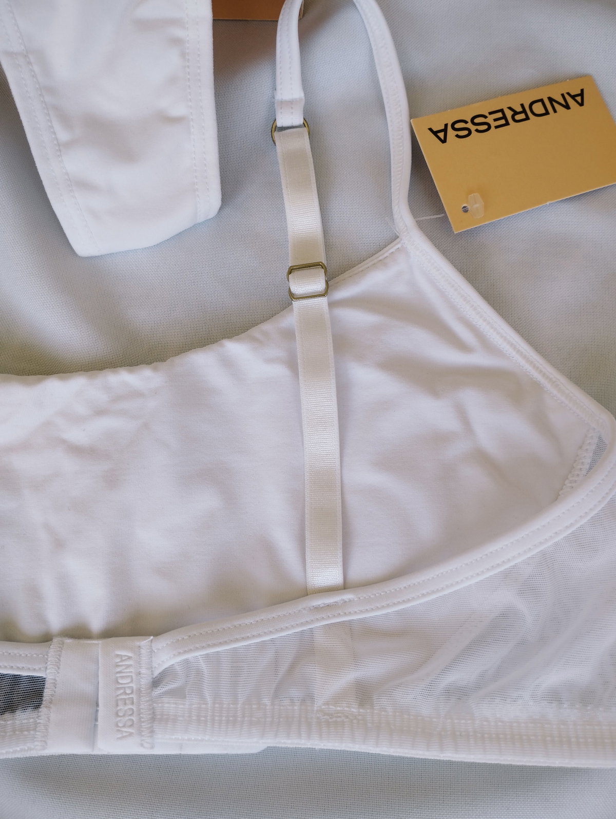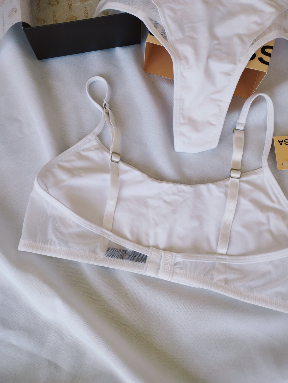 ❣ Corpiño tipo top con broche en la espalda de microfibra de nylon con recortes en tul con lycra
