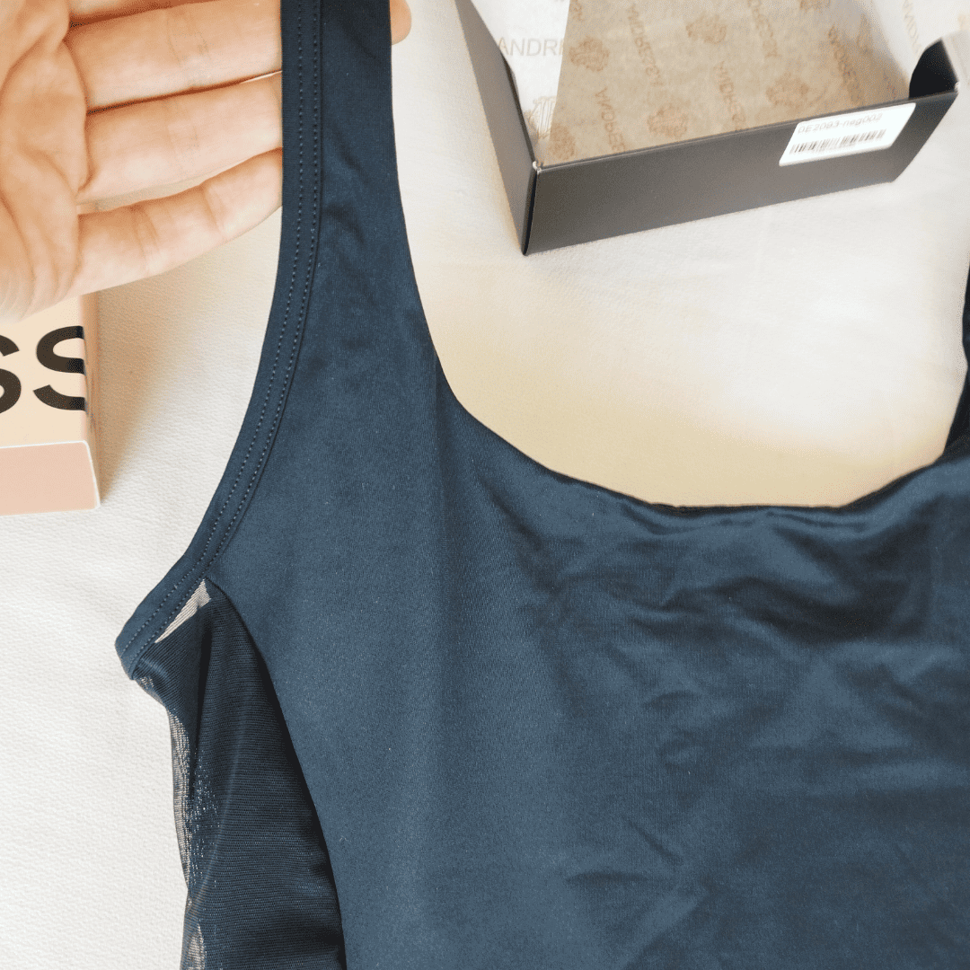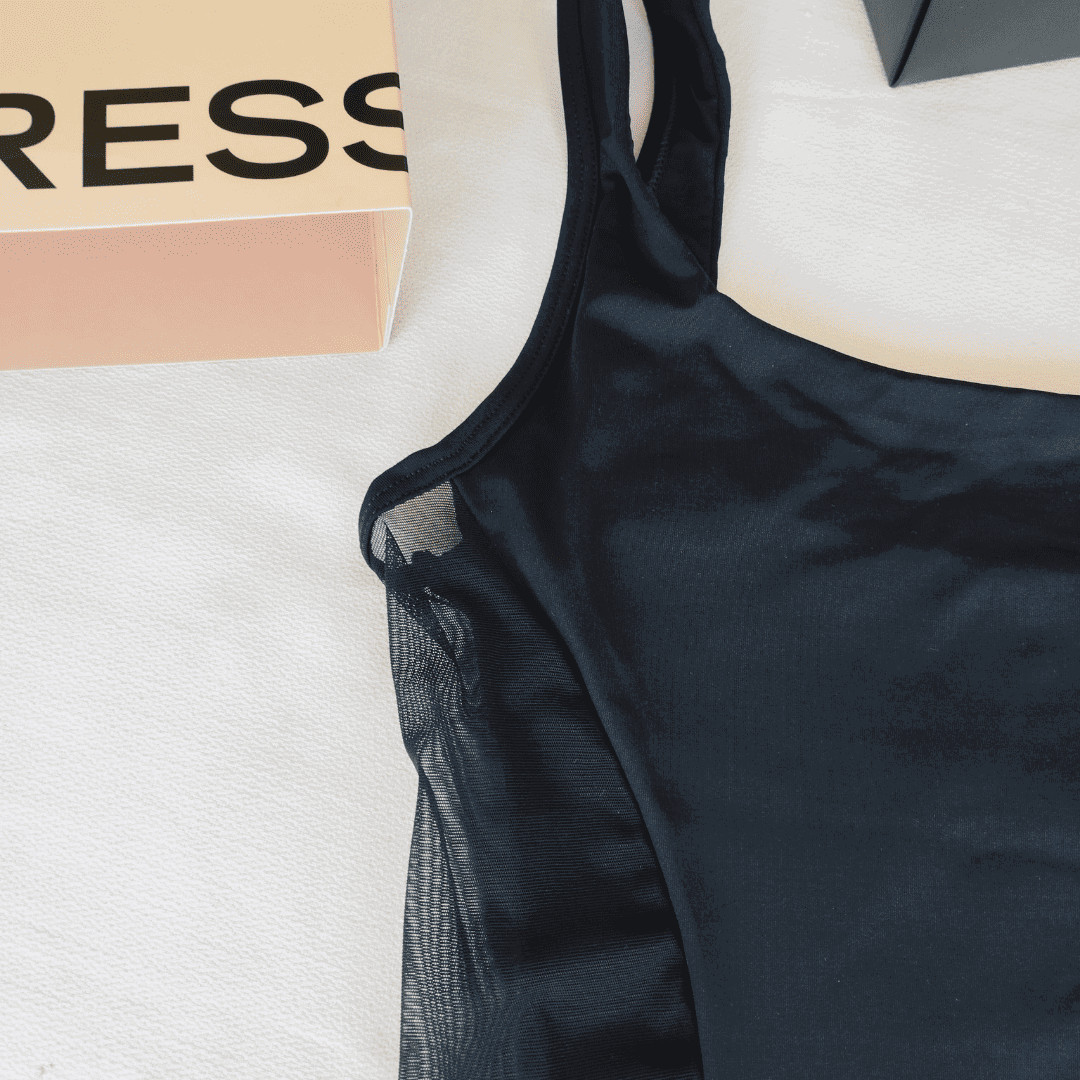 ❣Body tipo musculosa de microfibra (doble tela) y detalle de tul en el lateral. Tiene gancho en la entrepierna.