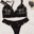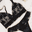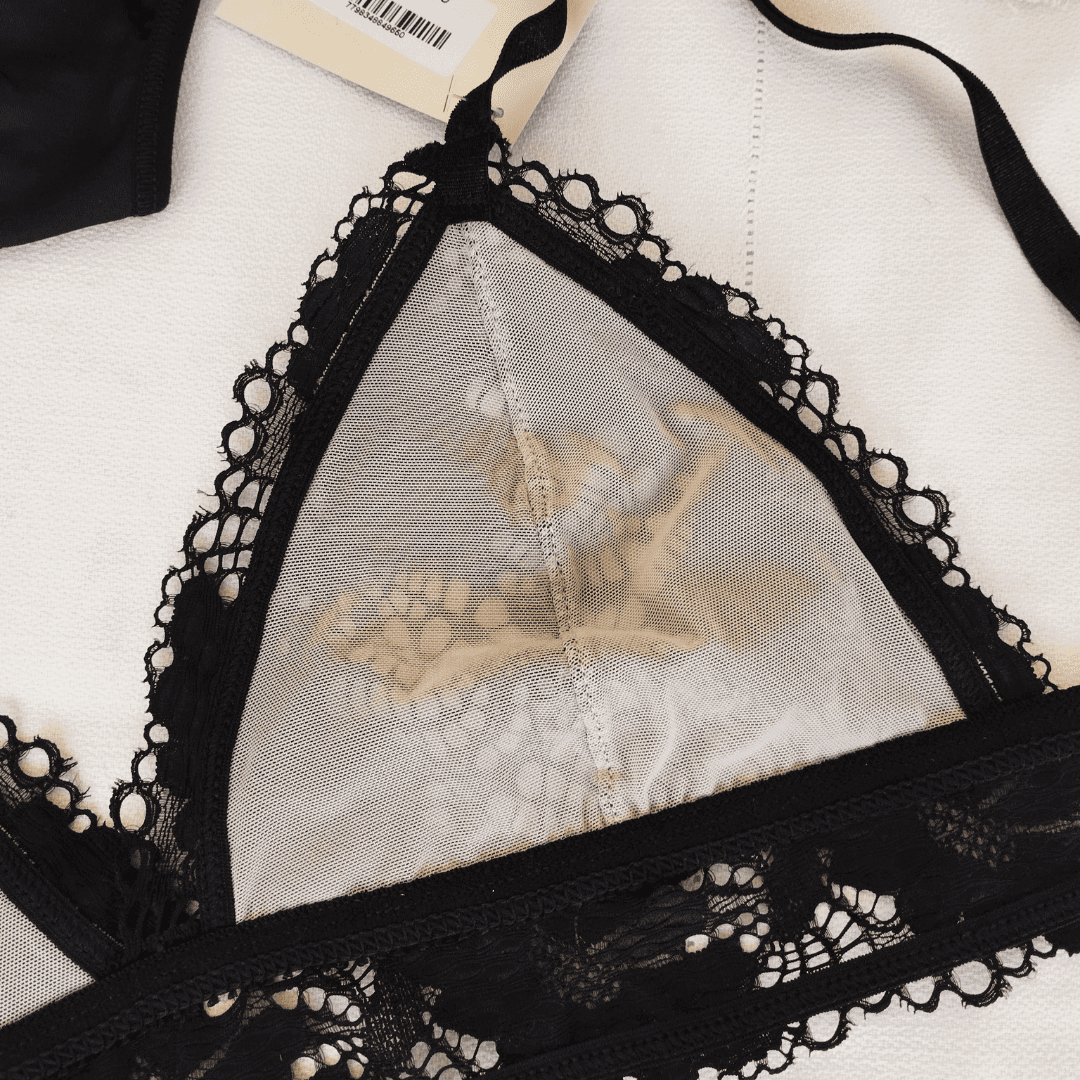 ❣Conjunto triángulo sin relleno de puntilla con tazas forradas de tul y cintura de puntilla.