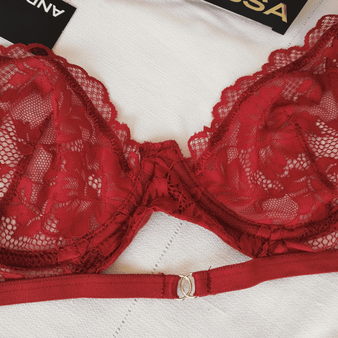 ❣ Corpiño con aro sin relleno de puntilla con detalle central.