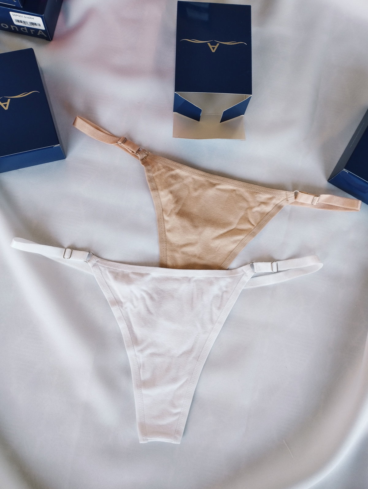 ❣️El pack contiene less regulables x2 de algodón y lycra lisas: una blanca y una nude