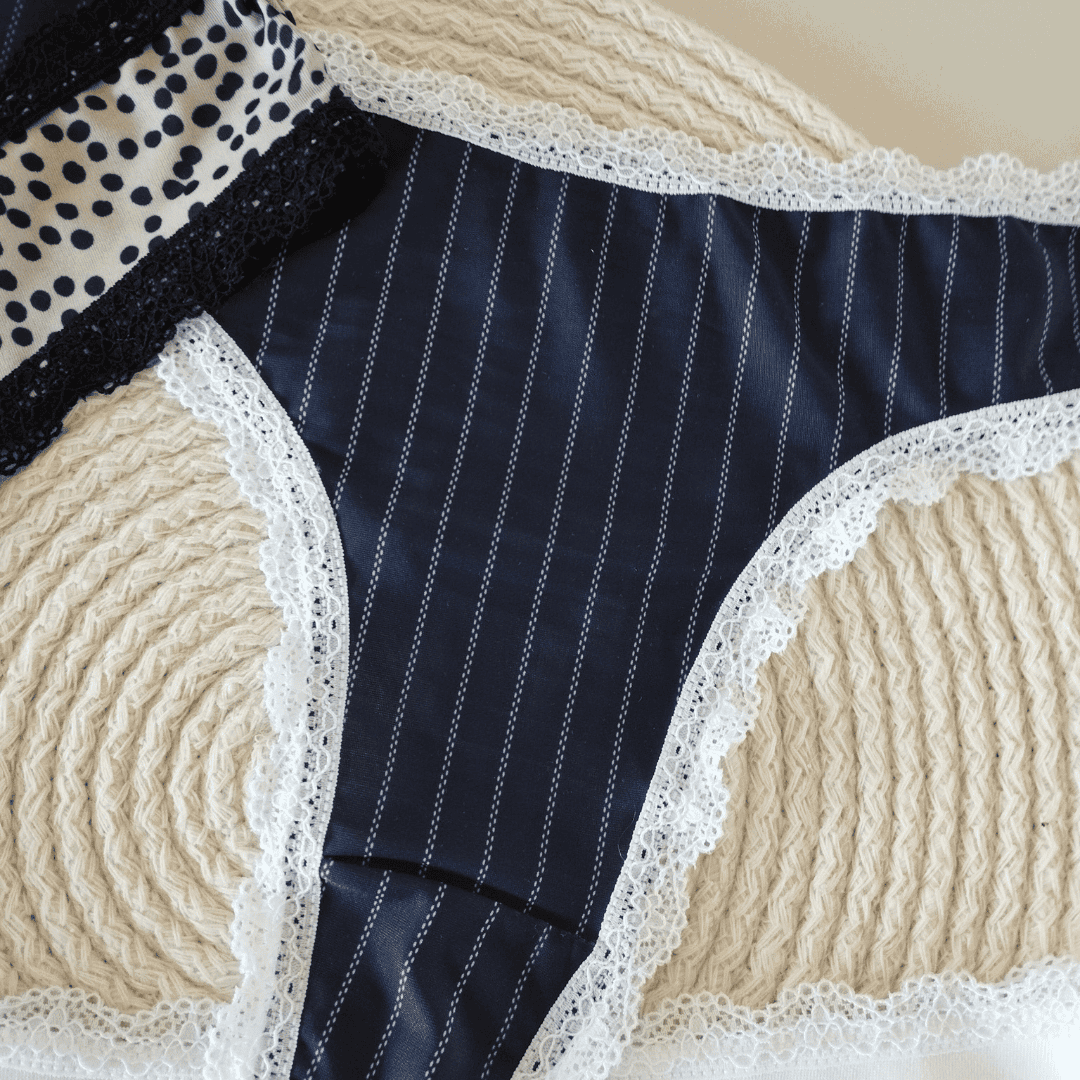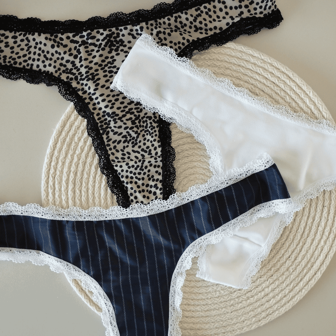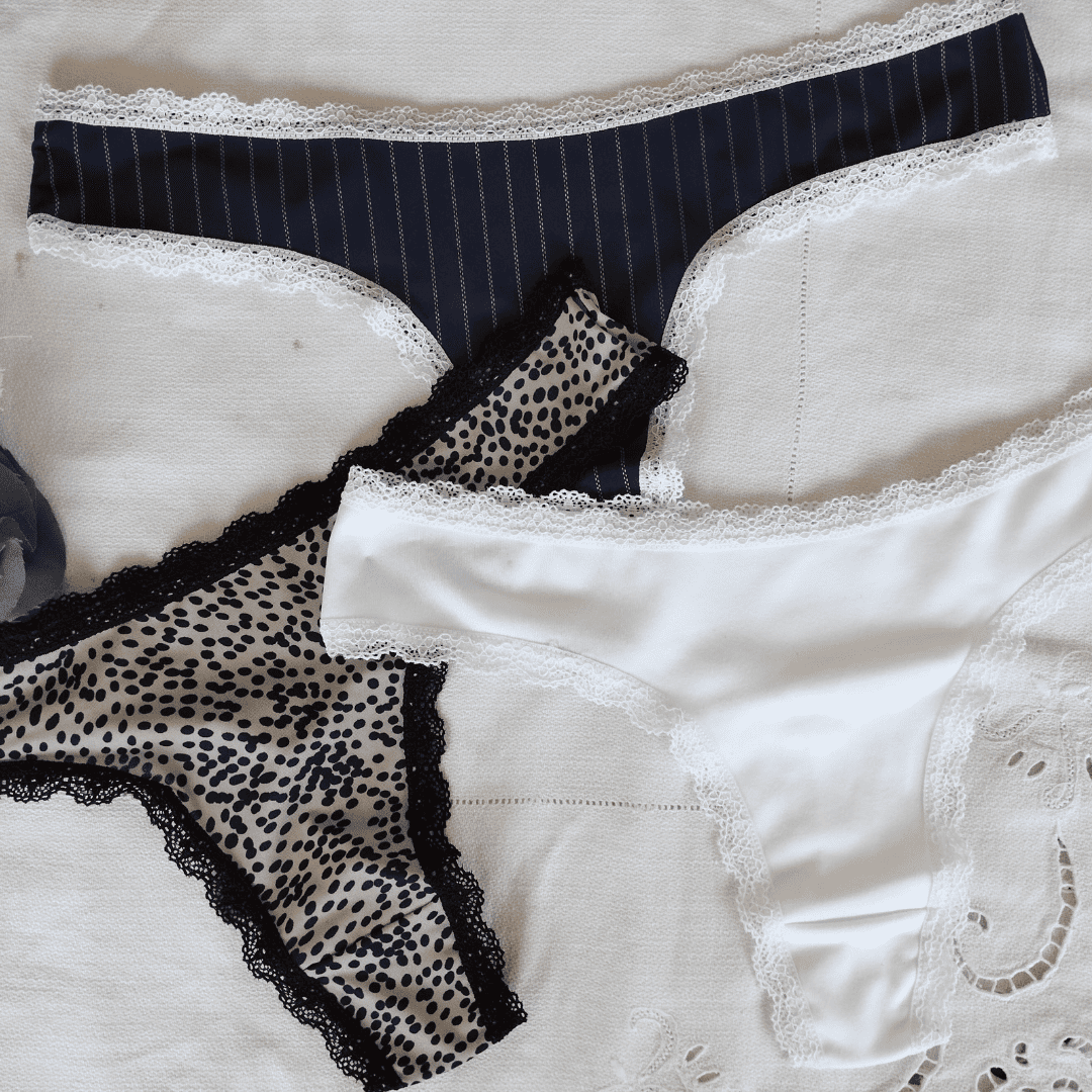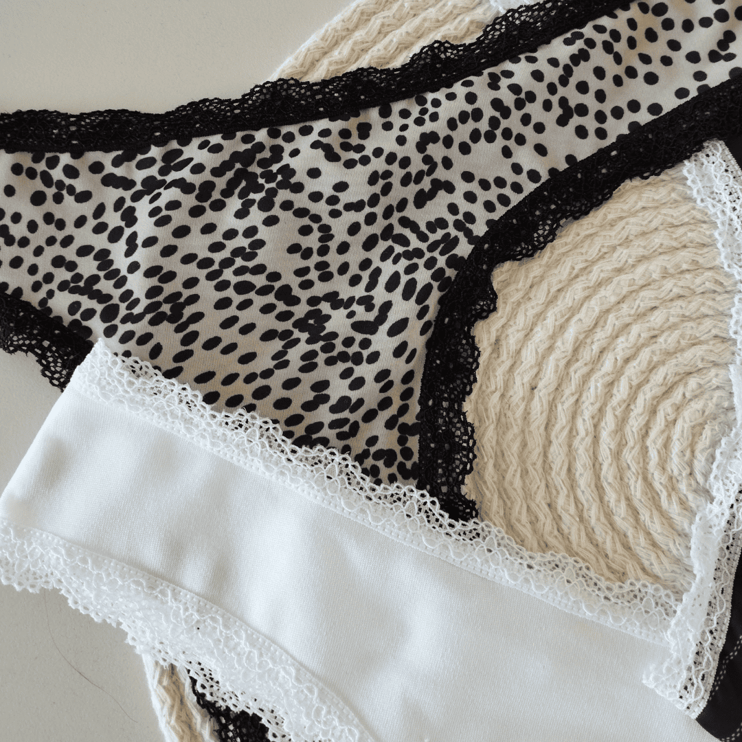 Pack de microfibra y puntilla: una blanca lisa, una print y una azul marino. Son muy suaves y no ajustan.