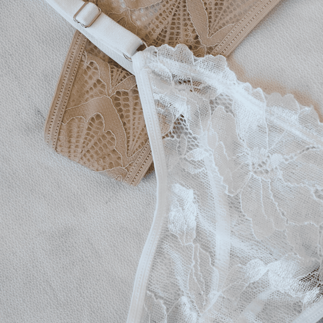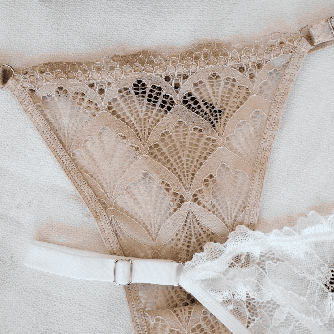 Pack x 2 less regulable de puntilla: una blanca y una rosa viejo (nude)