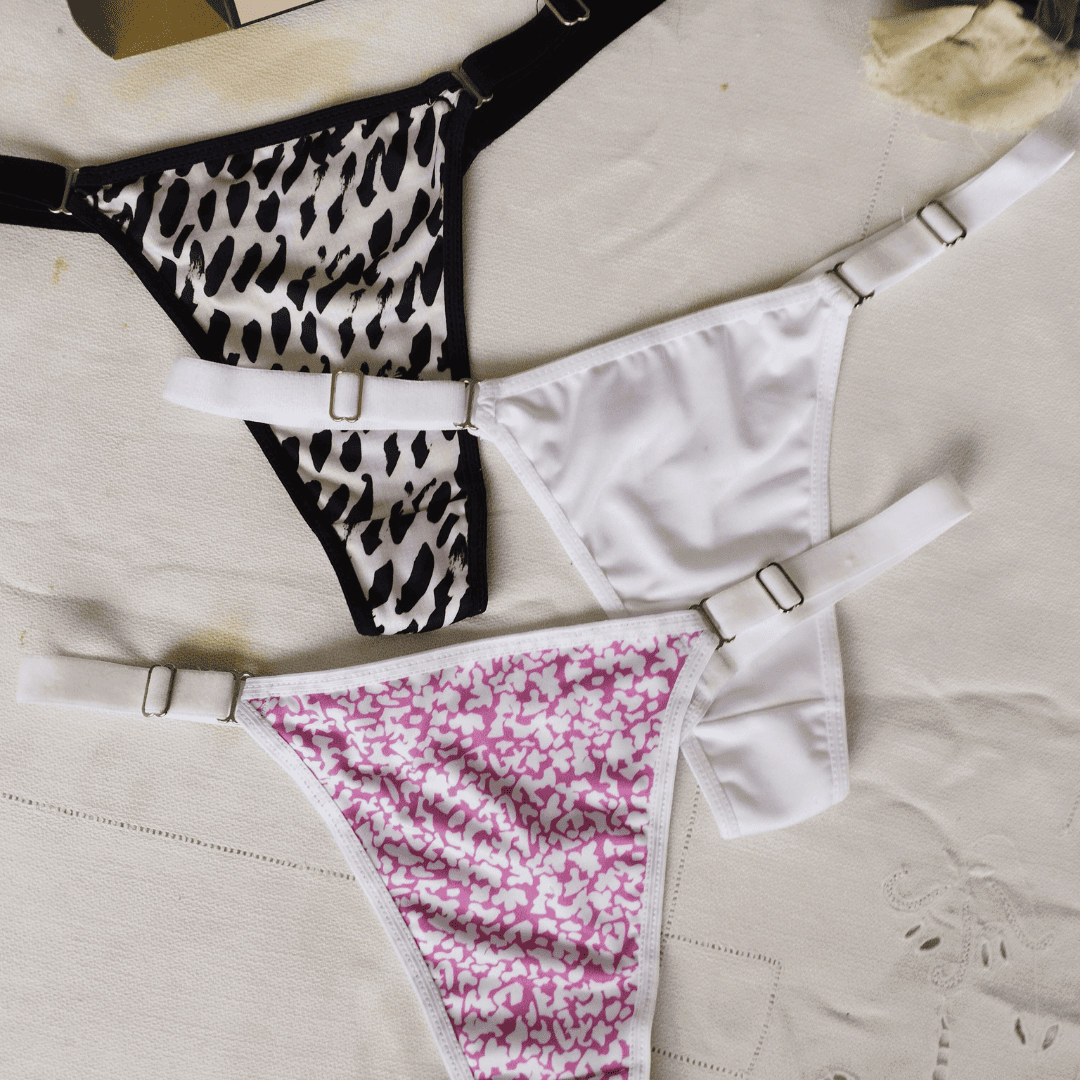 Pack x 3 less regulables de microfibra estampada con elástico ancho.