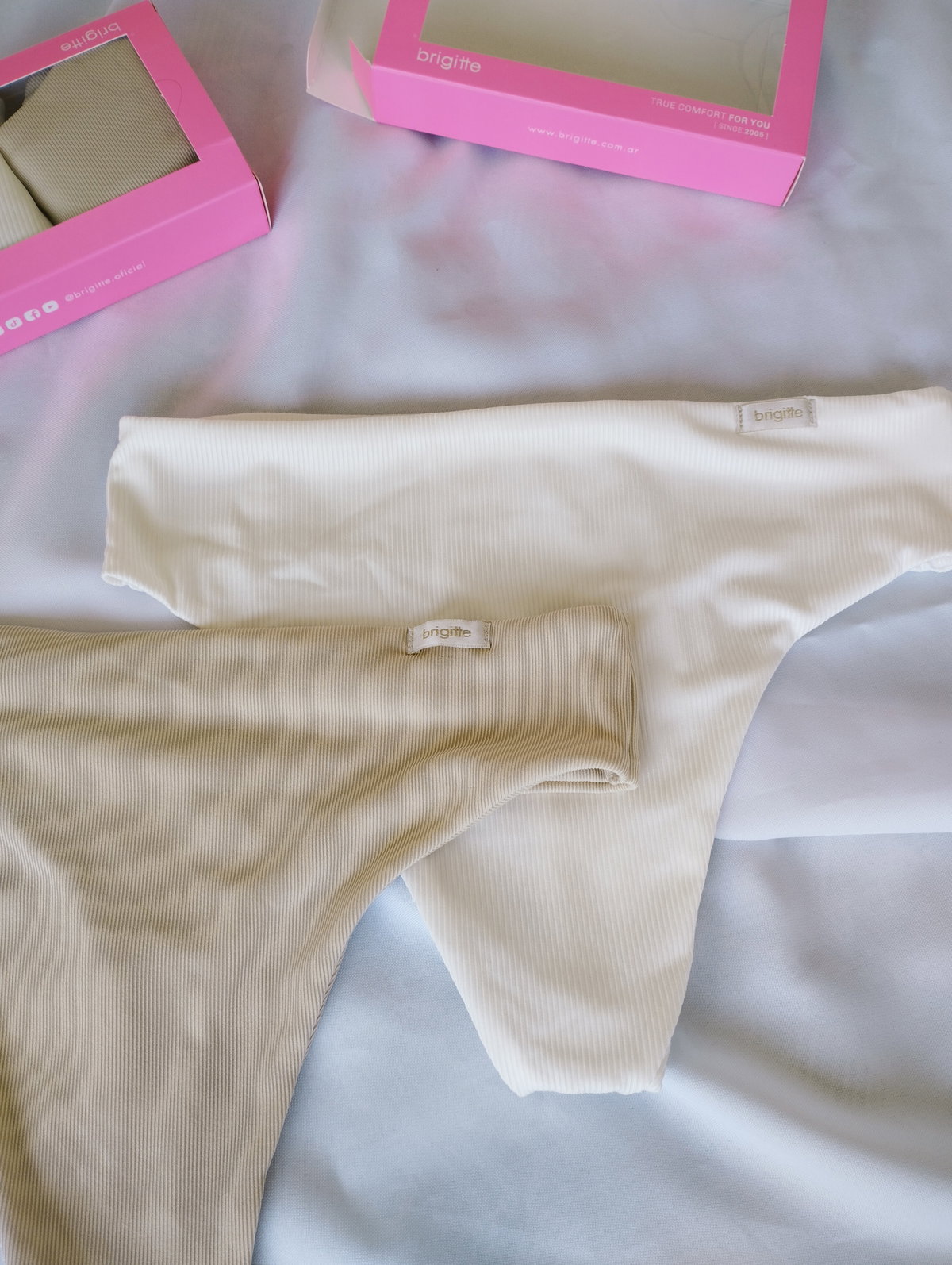 ❣ Pack x2 less tiro alto de morley doble tela: una blanca y una hueso.