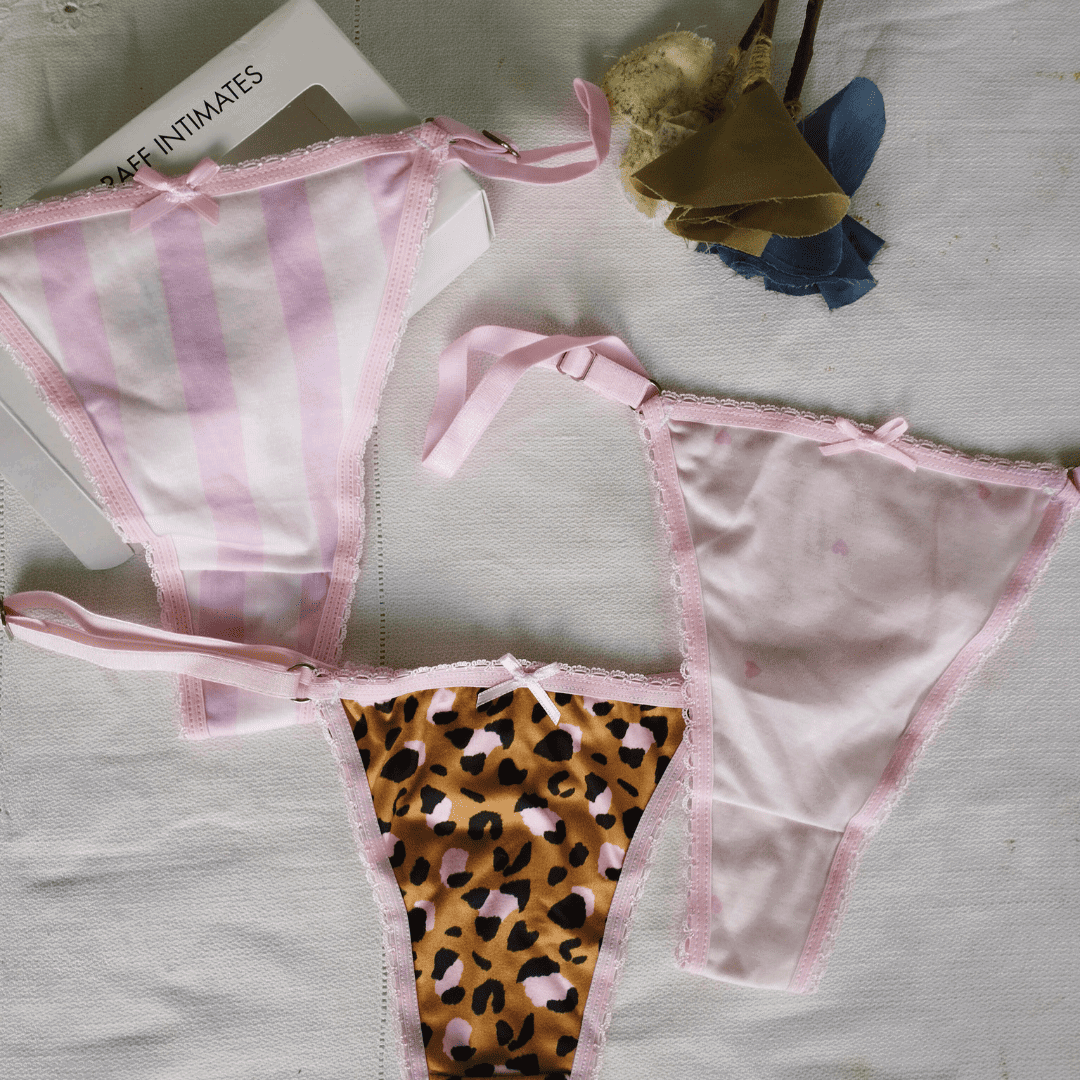 Pack less x 3 de modal estampadas: una print, una rayada y una con corazones.