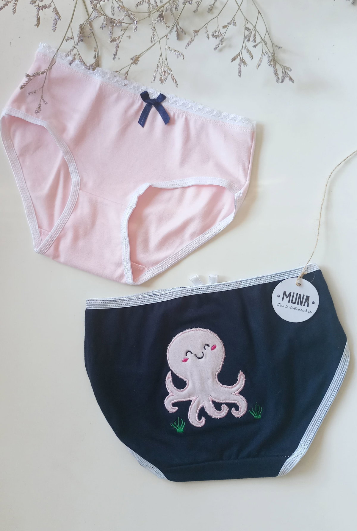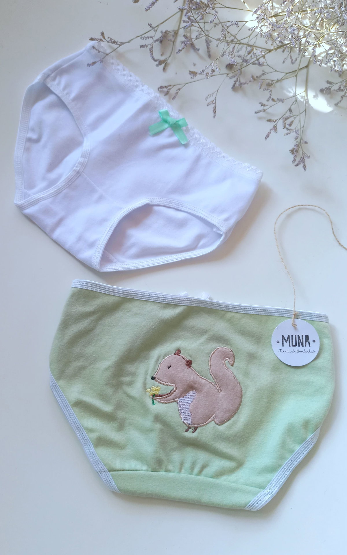 ❣ Pack por dos bombachitas para nenas: una bordada en la parte de atrás y otra lisa.