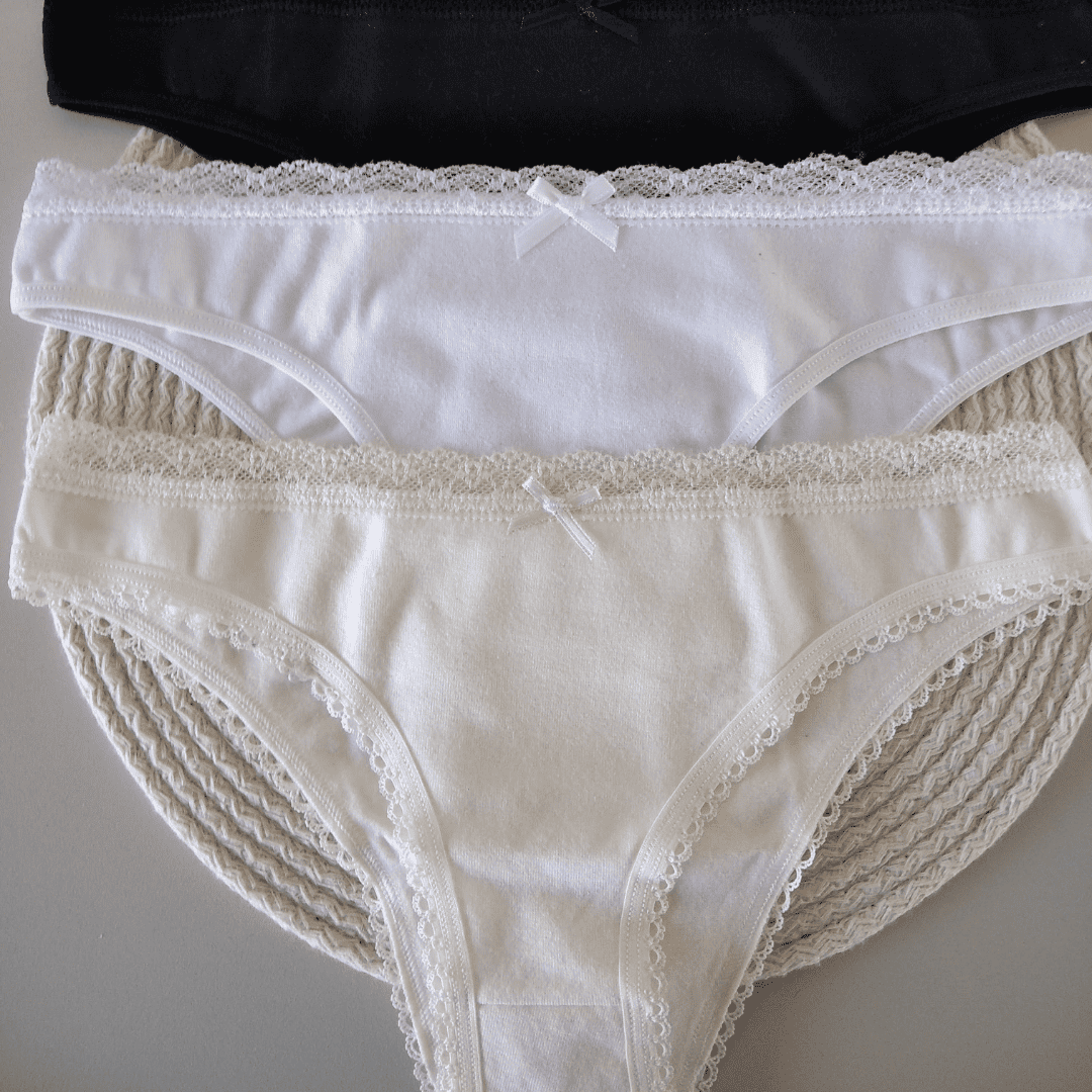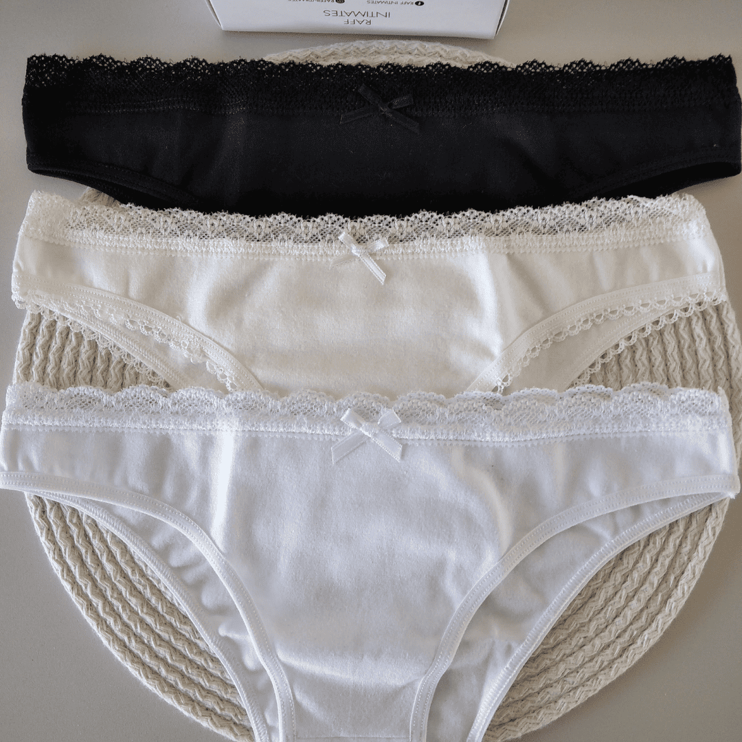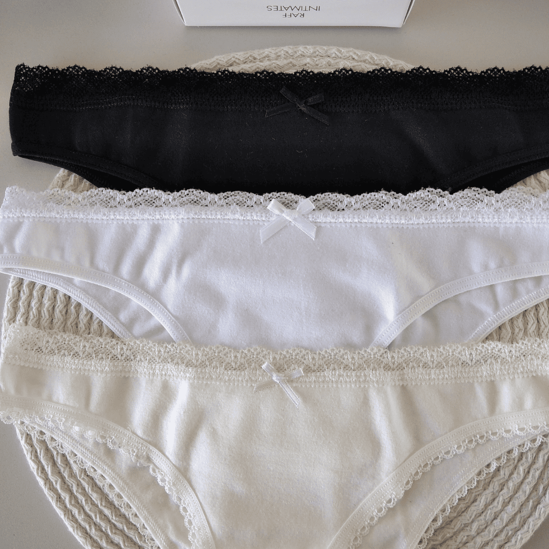 Pack de vedetinas x 3 de algodón y lycra con terminación en fina puntilla. Trae una vedetina color hueso, una negra y una blanca
