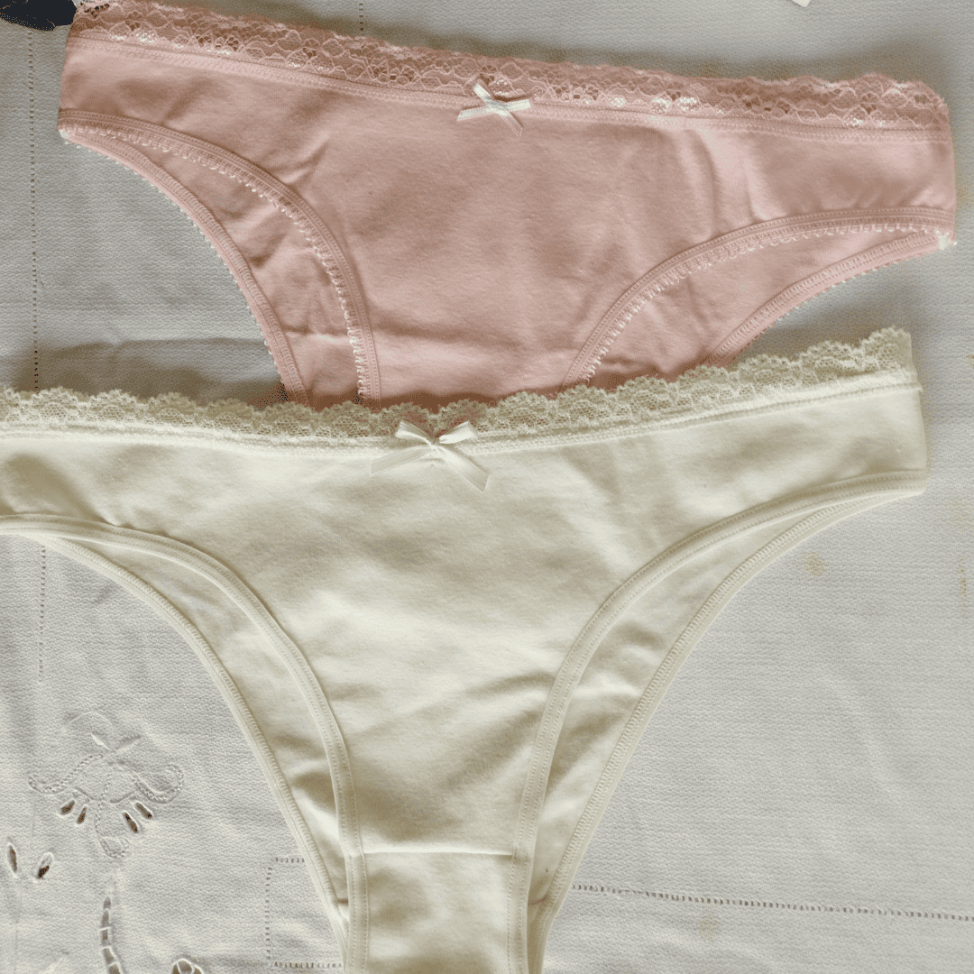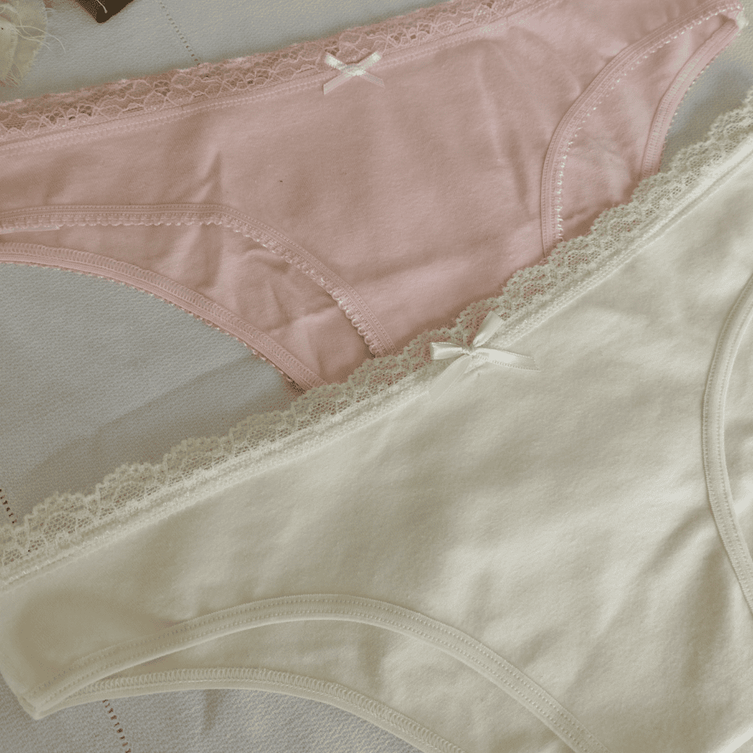 Pack de vedetinas x 2 de algodón y lycra con terminación en fina puntilla.